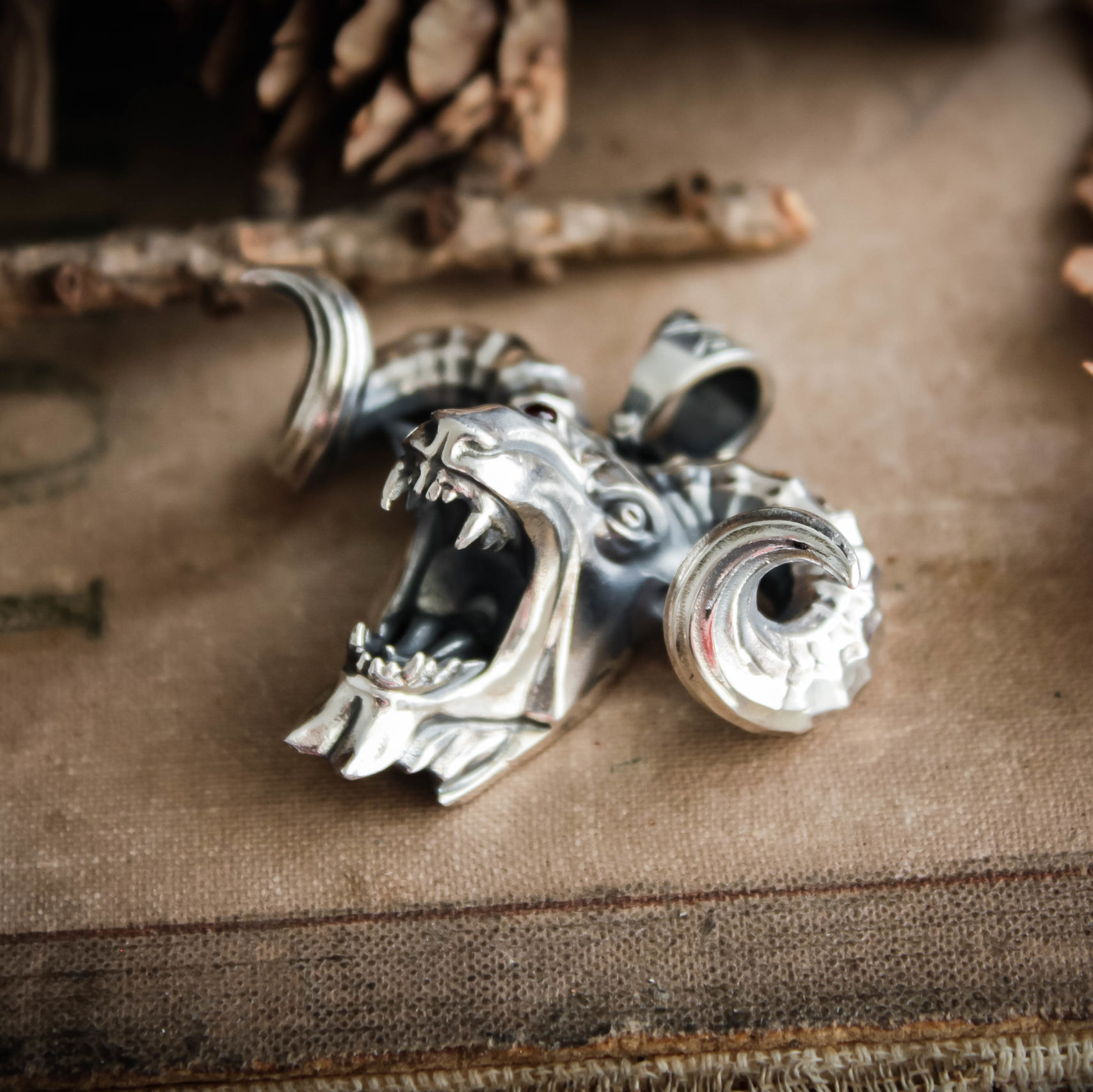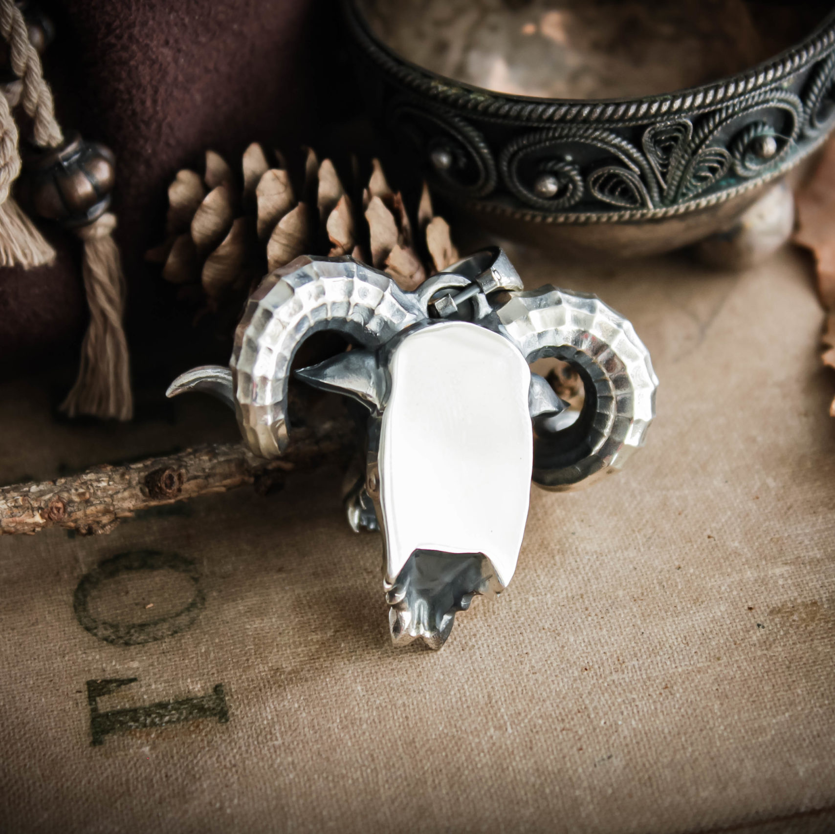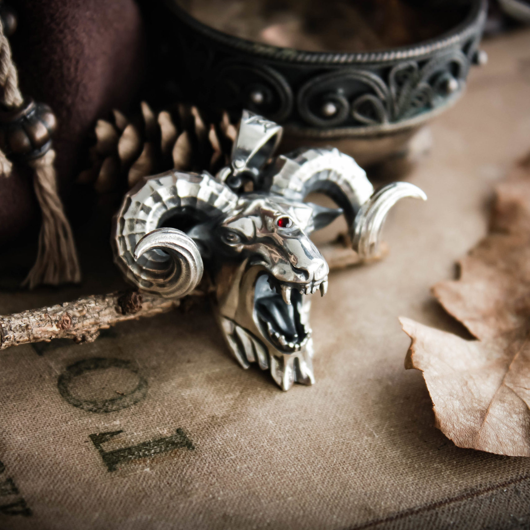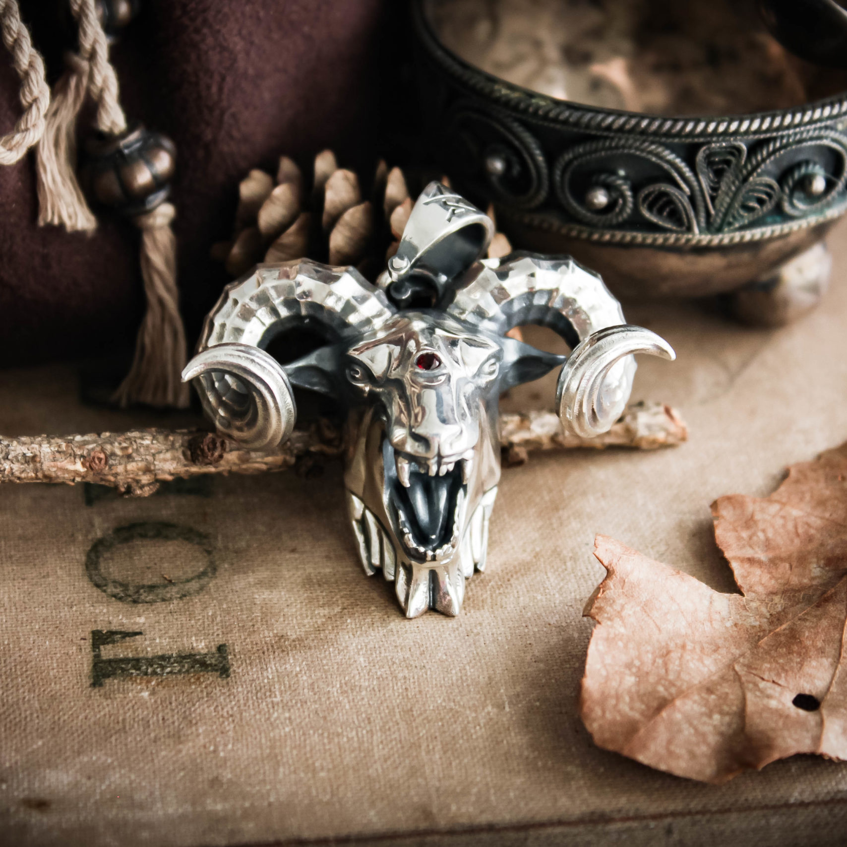 A medallion in the shape of a Chort’s head with ram’s horns