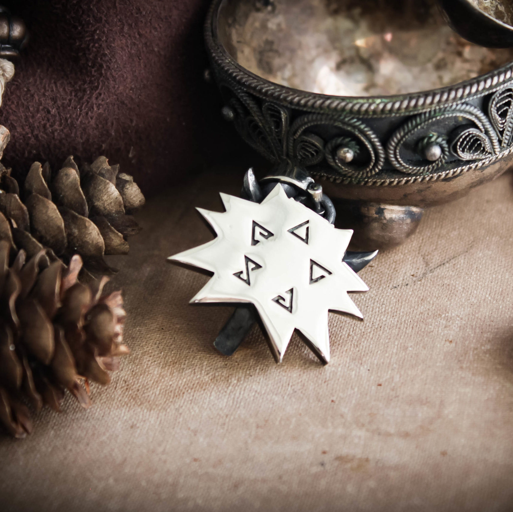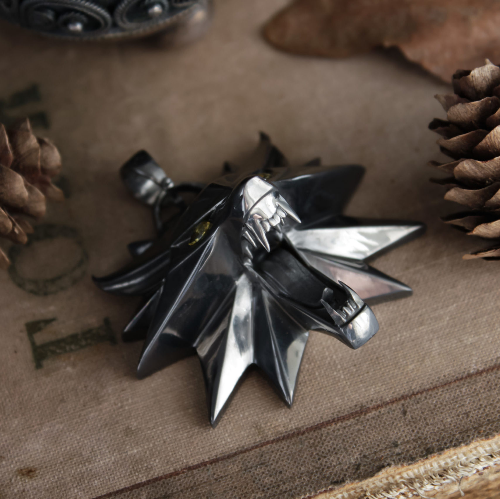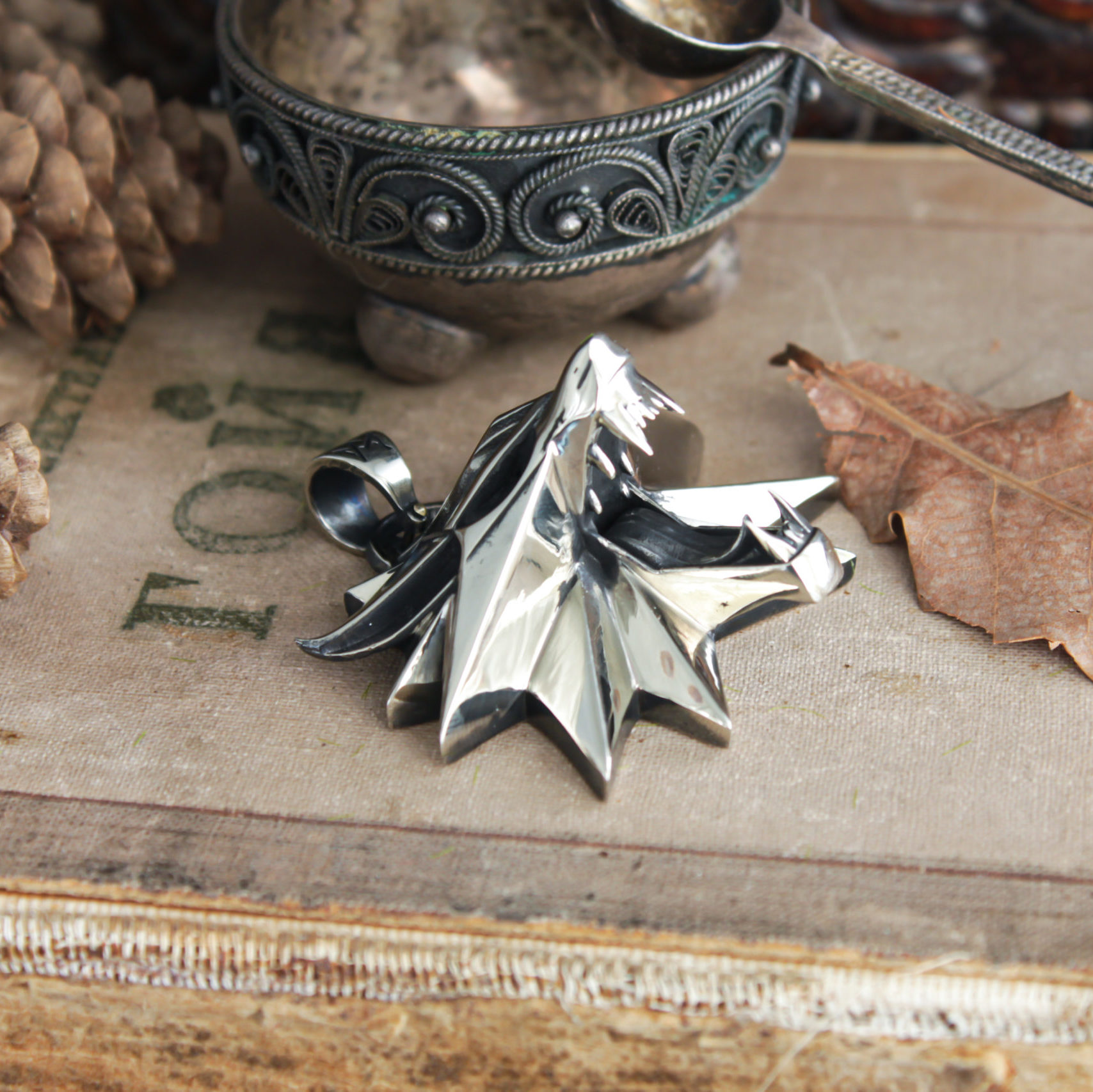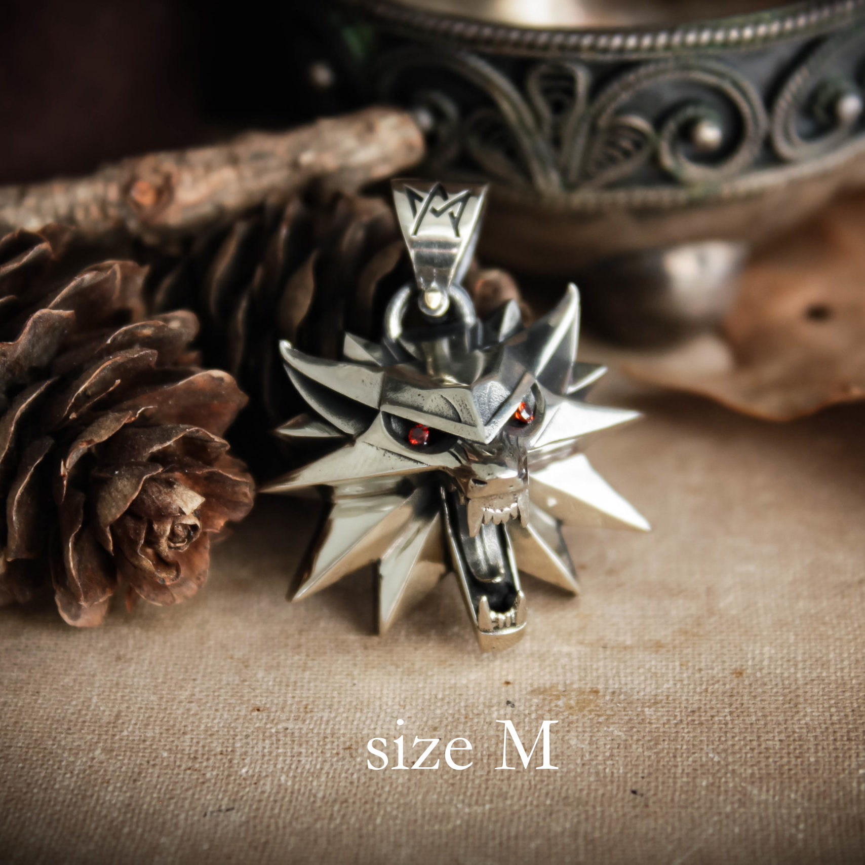 Wolf school medallion comes in your choice of nickel silver, sterling silver, or black rhodium-plated sterling silver. It’s available in two sizes to suit your preference.