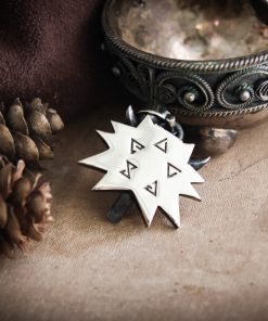 To enhance the intricate details, the medallion is finished with a decorative blackening process. For an extra touch of personalization, you can also add cubic zirconia stones in different colors or even garnets.