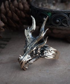 The Dragon ring comes in your choice of Sterling silver or Bronze. To enhance the intricate details, the ring is finished with a decorative blackening process.