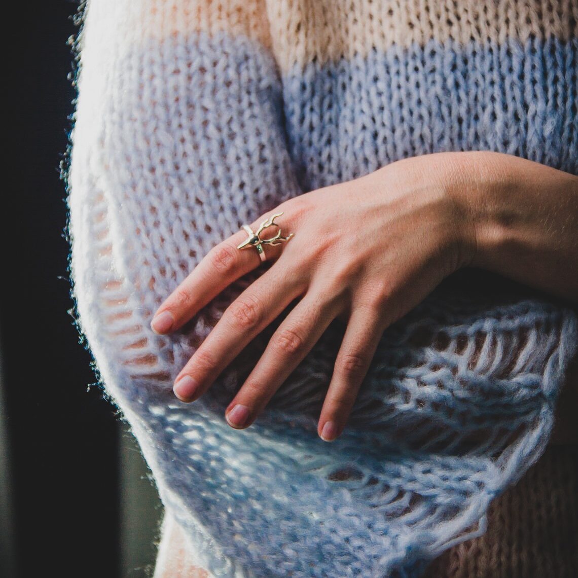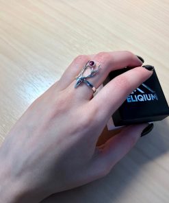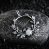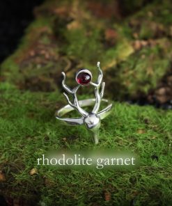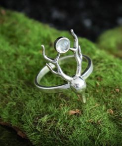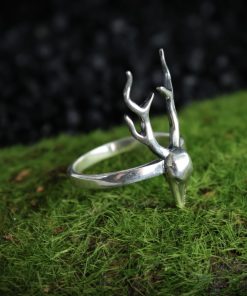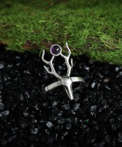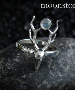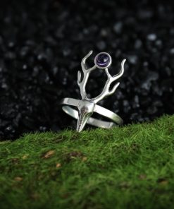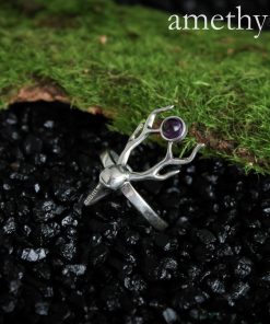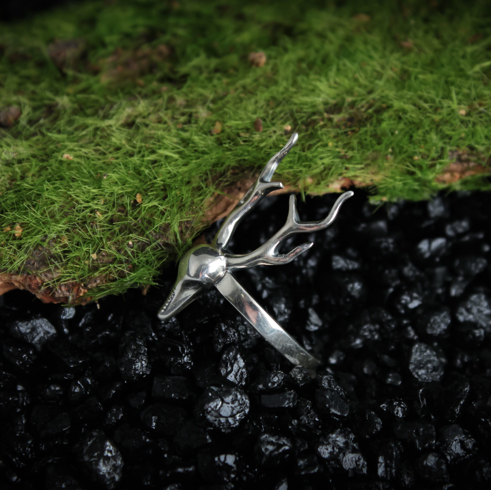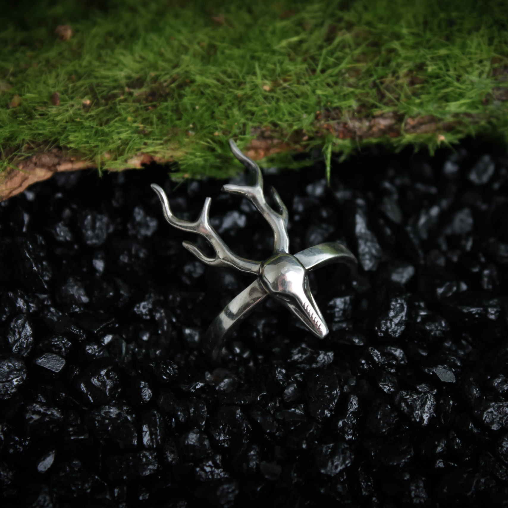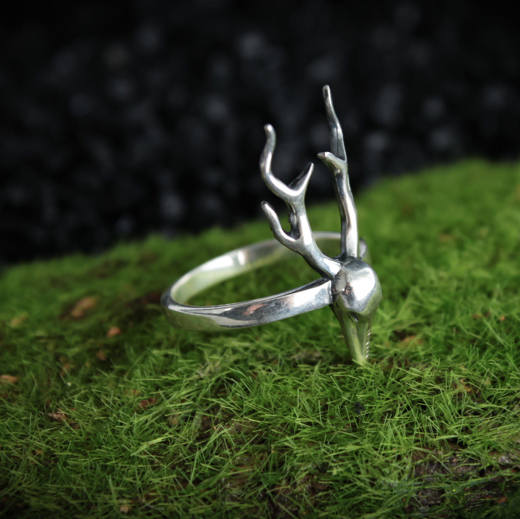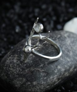 Handcrafted silver deer ring with a genuine gemstone accent.