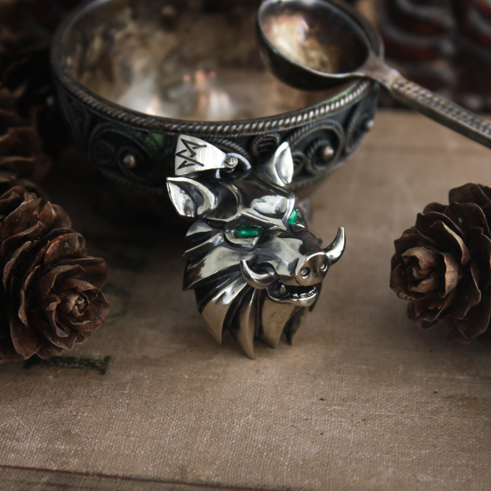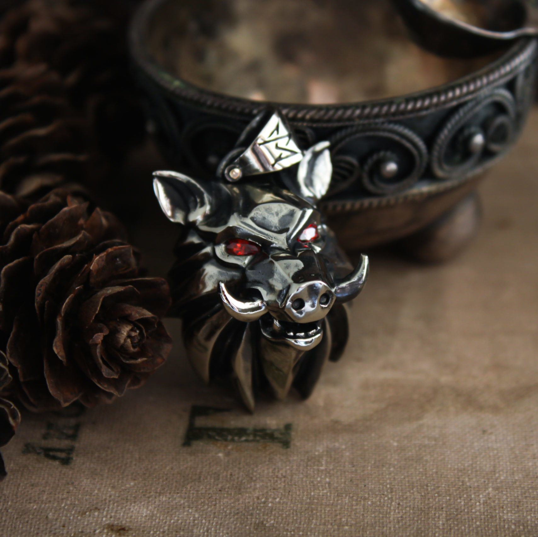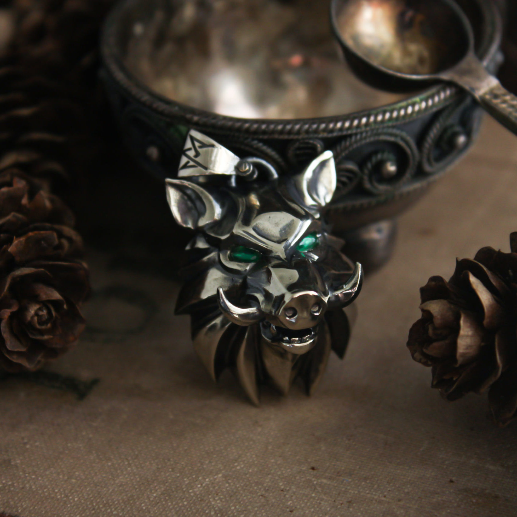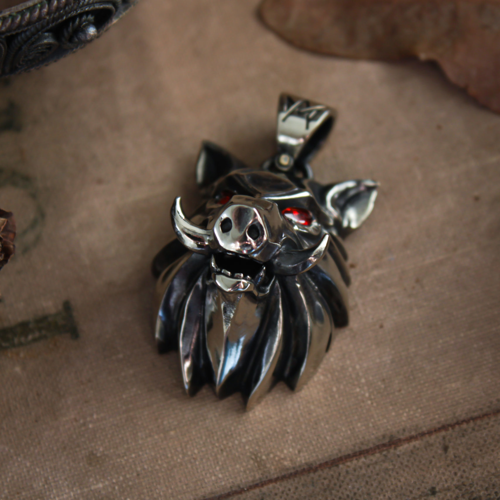 Very detailed boar medallion made in a style of a popular game