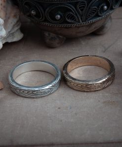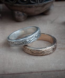 Dark Wood Grain Ring comes in your choice of Sterling silver or Bronze. To enhance the intricate details, the ring is finished with a decorative blackening process.