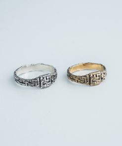 The Estus ring comes in your choice of Sterling silver or Bronze. To enhance the intricate details, the ring is finished with a decorative blackening process.