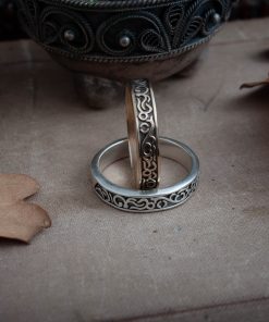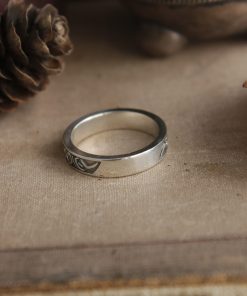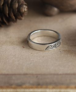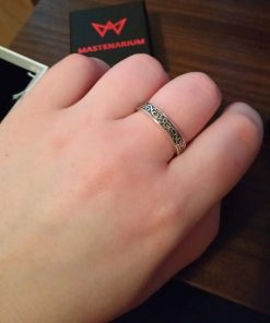 Darkmoon Blade Covenant ring comes in your choice of Sterling silver or Bronze. To enhance the intricate details, the ring is finished with a decorative blackening process.