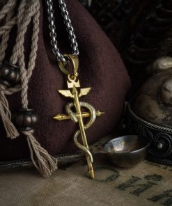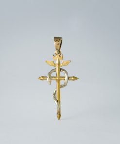 Sterling silver gold plated version – Cross is gold plated (yellow), snake is silver (white).
