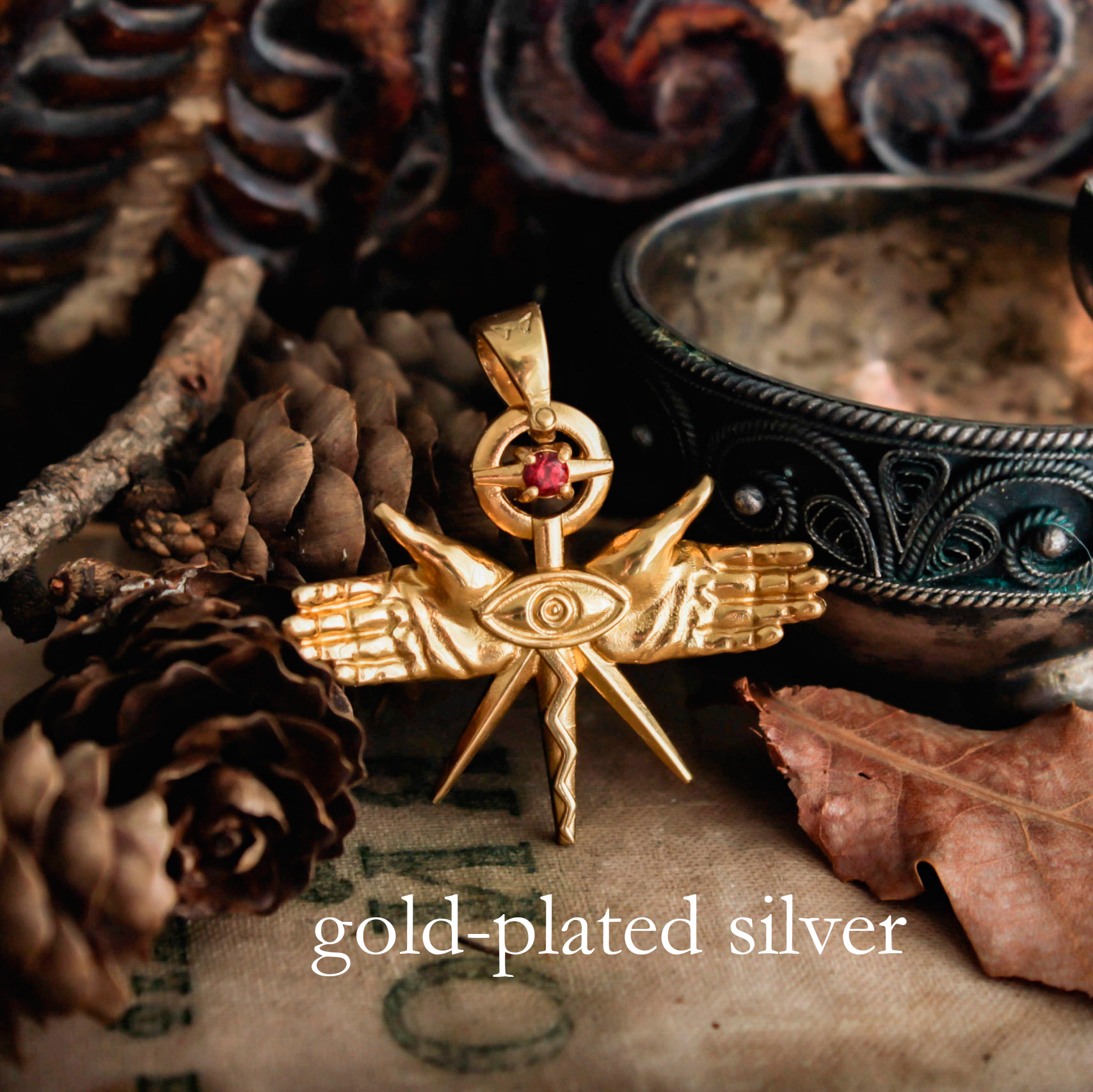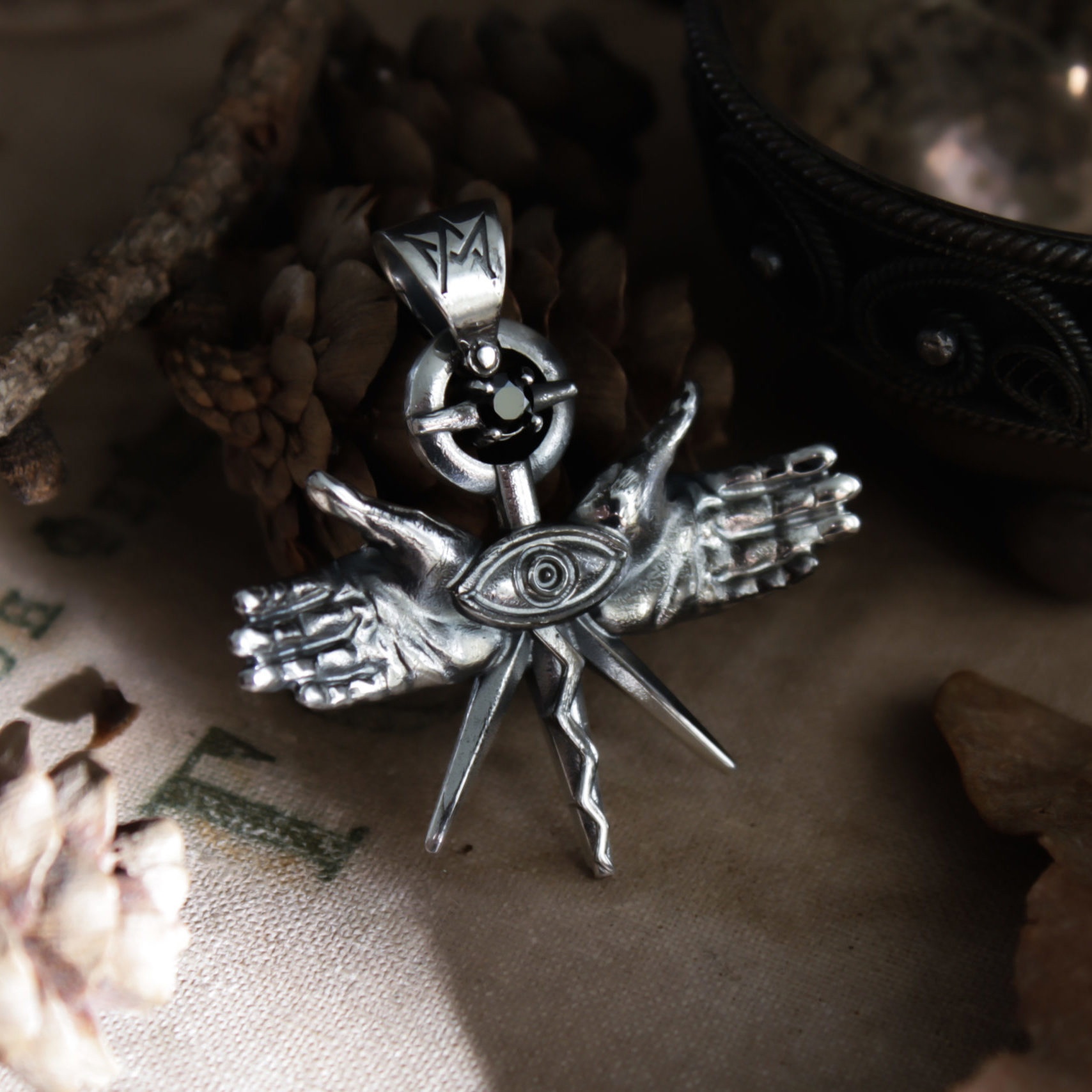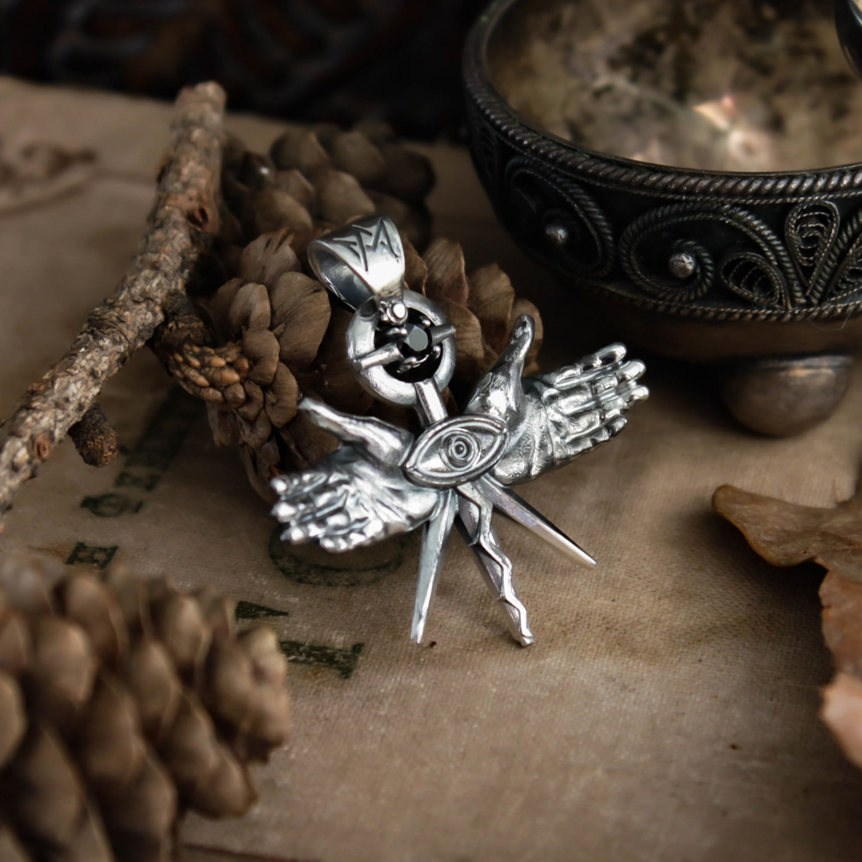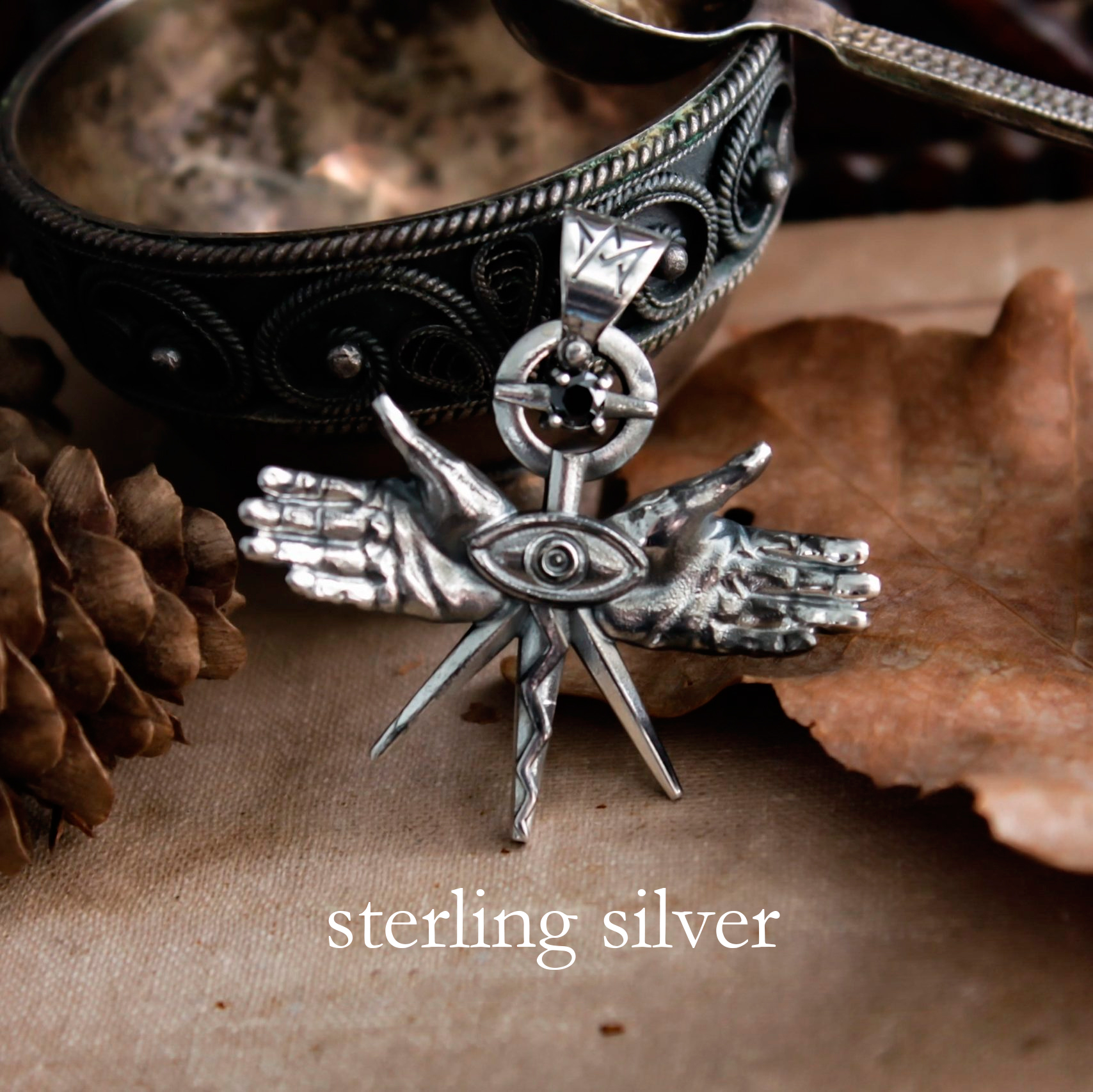 Charm of Mana pendant comes in your choice of sterling silver or brass. To enhance the intricate details, the pendant is finished with a decorative blackening process.