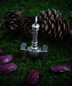 Mjölnir adorned with the Vegvisir helps its wearer reach their goal even when the path is unclear, make the right decisions, and stay protected from misfortune while attracting good luck. This pendant combines strength, guidance, and protection rooted in Nordic mythology.