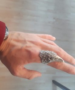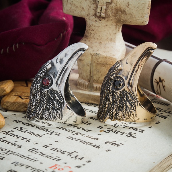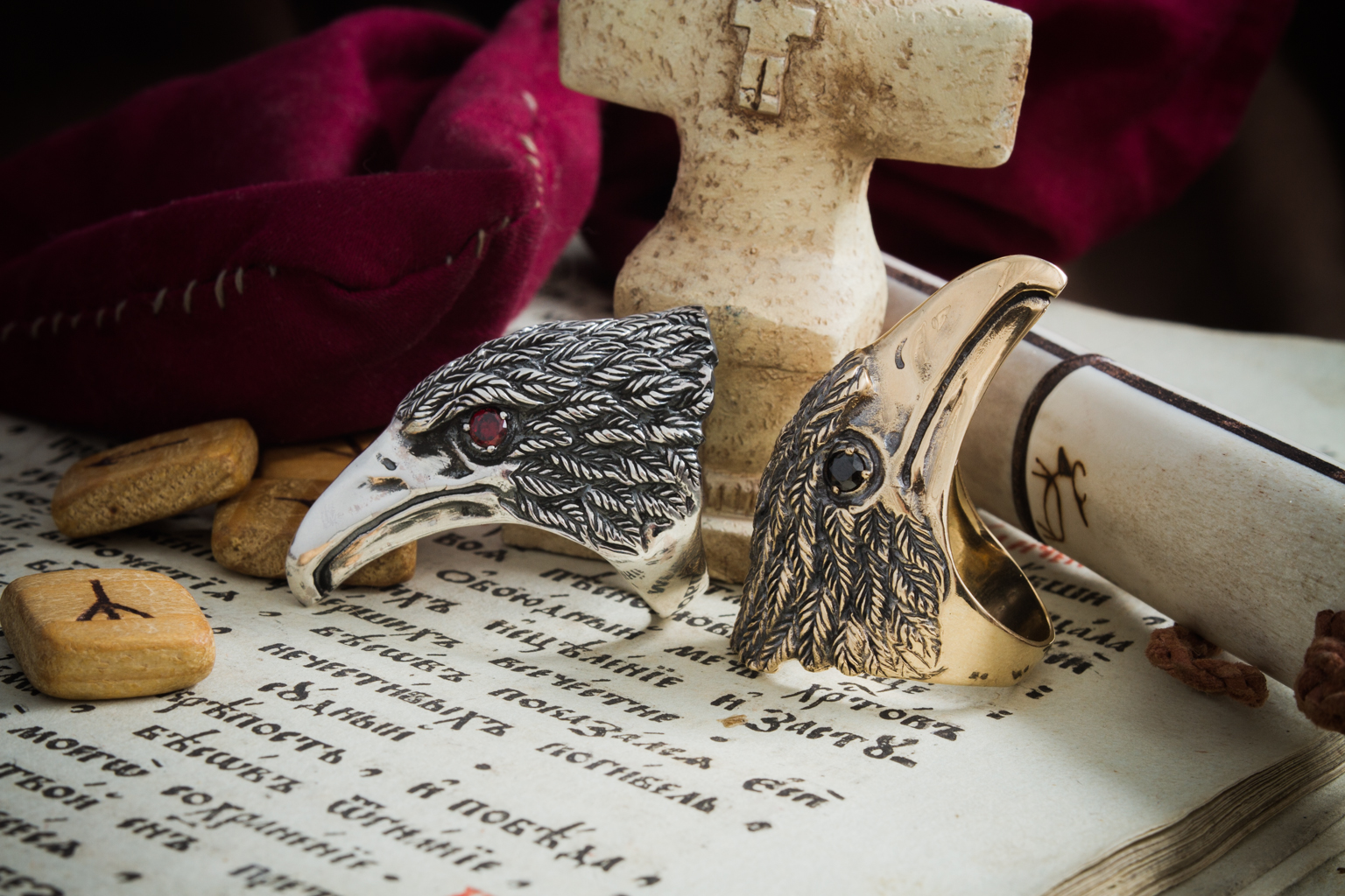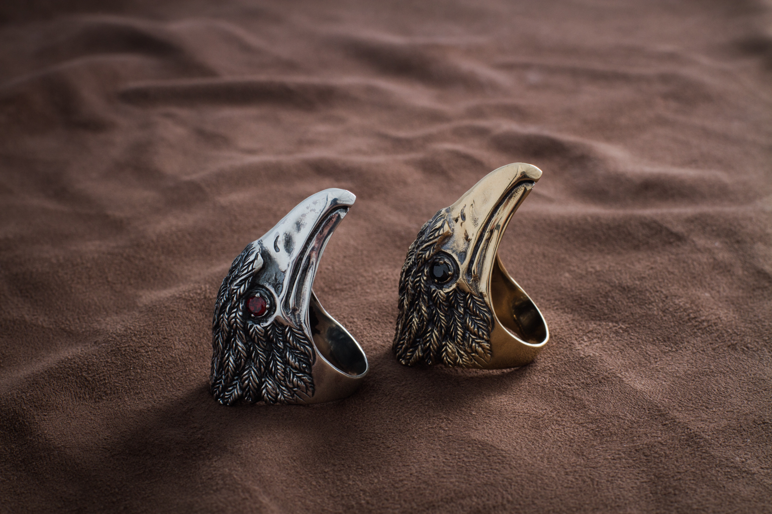 The Odin’s Raven Ring can be crafted in bronze or sterling silver. Finished with decorative blackening to enhance the texture and details.