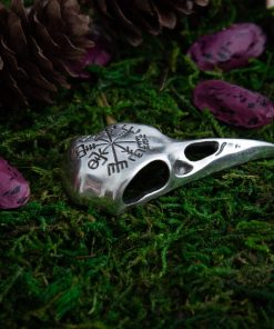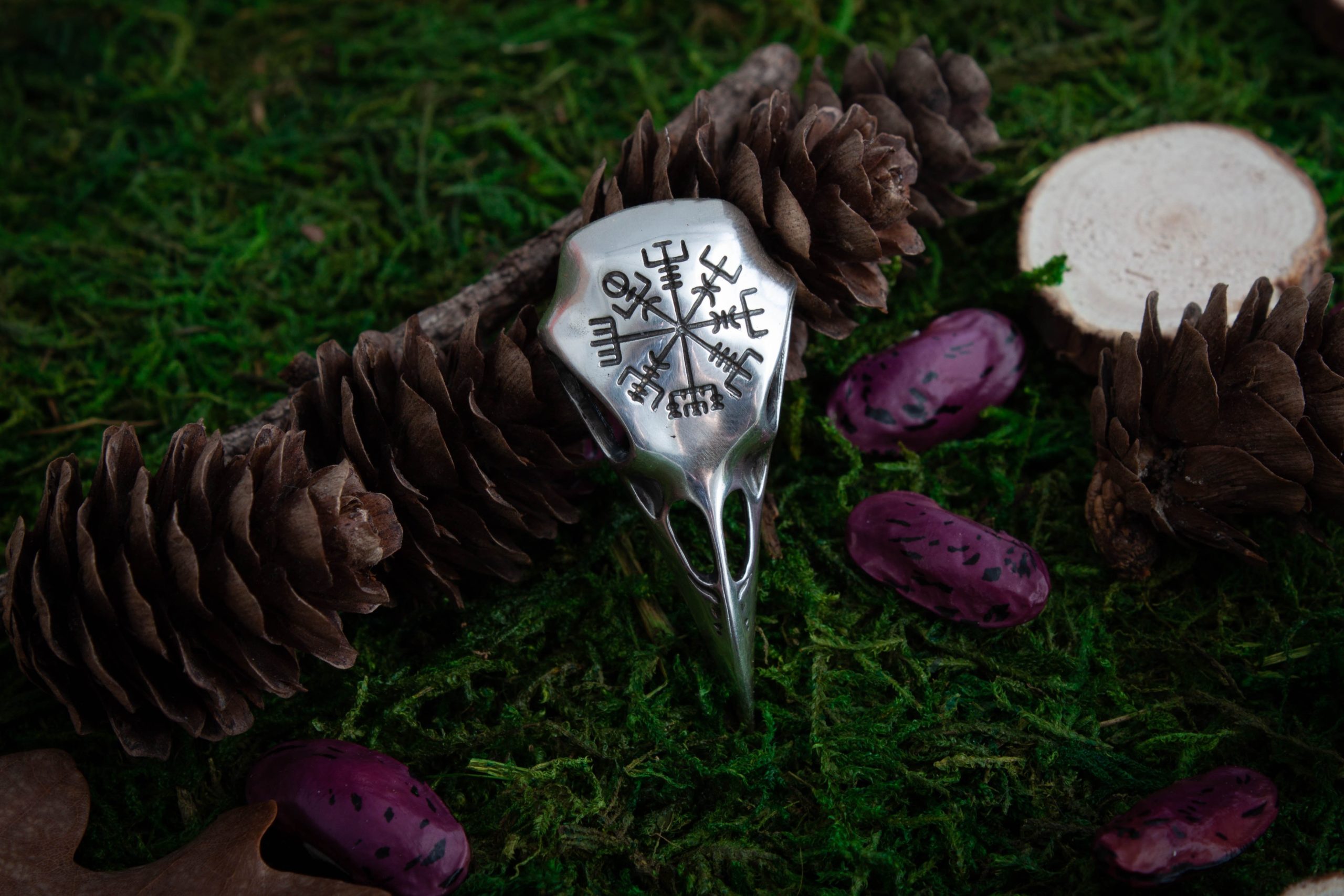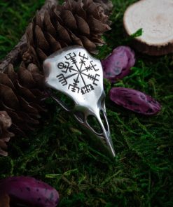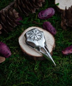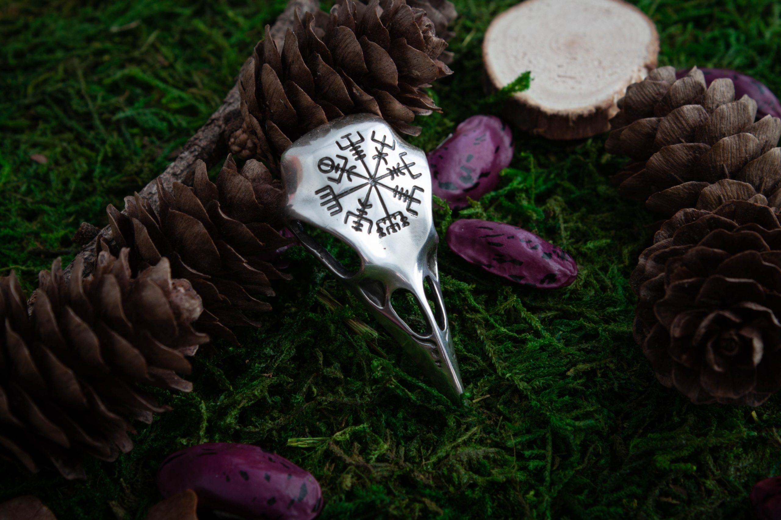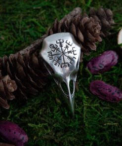 It is believed that a raven skull can seek out restless and cursed souls that have not left the earthly realm and bind them to serve their master. In addition, the skull is considered a powerful protective amulet. The ancient Icelandic symbol Vegvisir engraved on the skull is said to help one stay on the right path and make wise decisions, even in the most difficult circumstances.