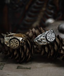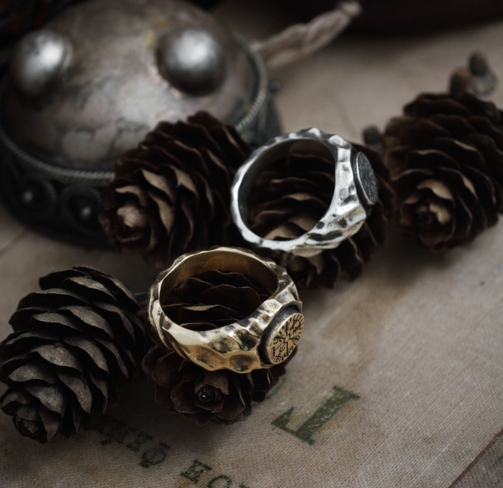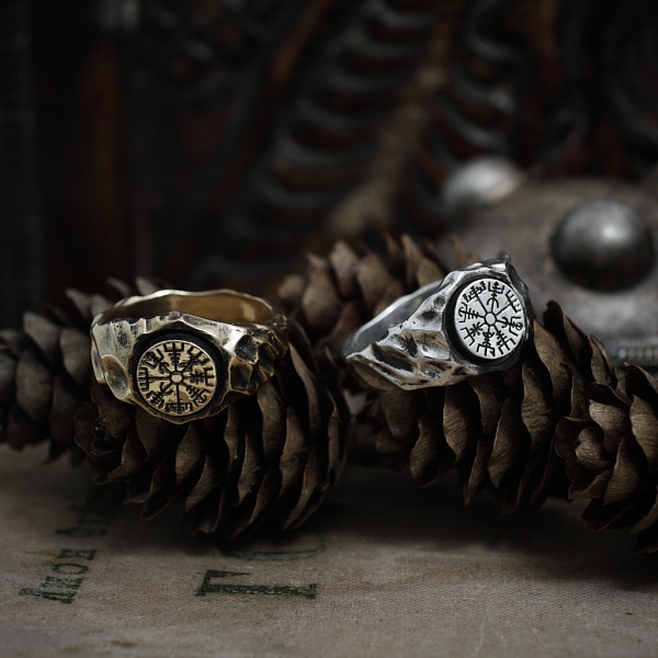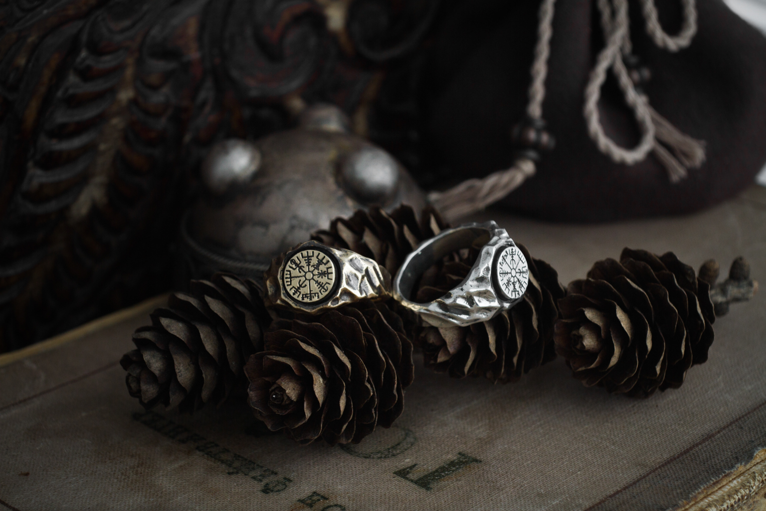 A Vegvísir ring is said to enhance intuition, improve the ability to analyze situations, and strengthen courage, willpower, and spiritual resilience.