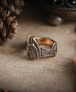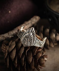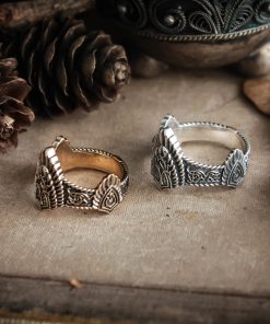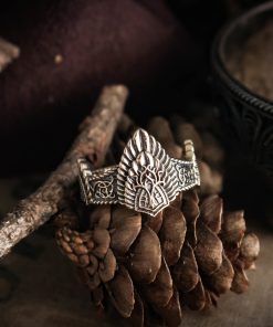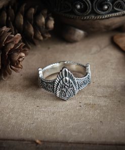 Ring of King Aragorn’s crown comes in your choice of Sterling silver or Bronze. To enhance the intricate details, the ring is finished with a decorative blackening process.