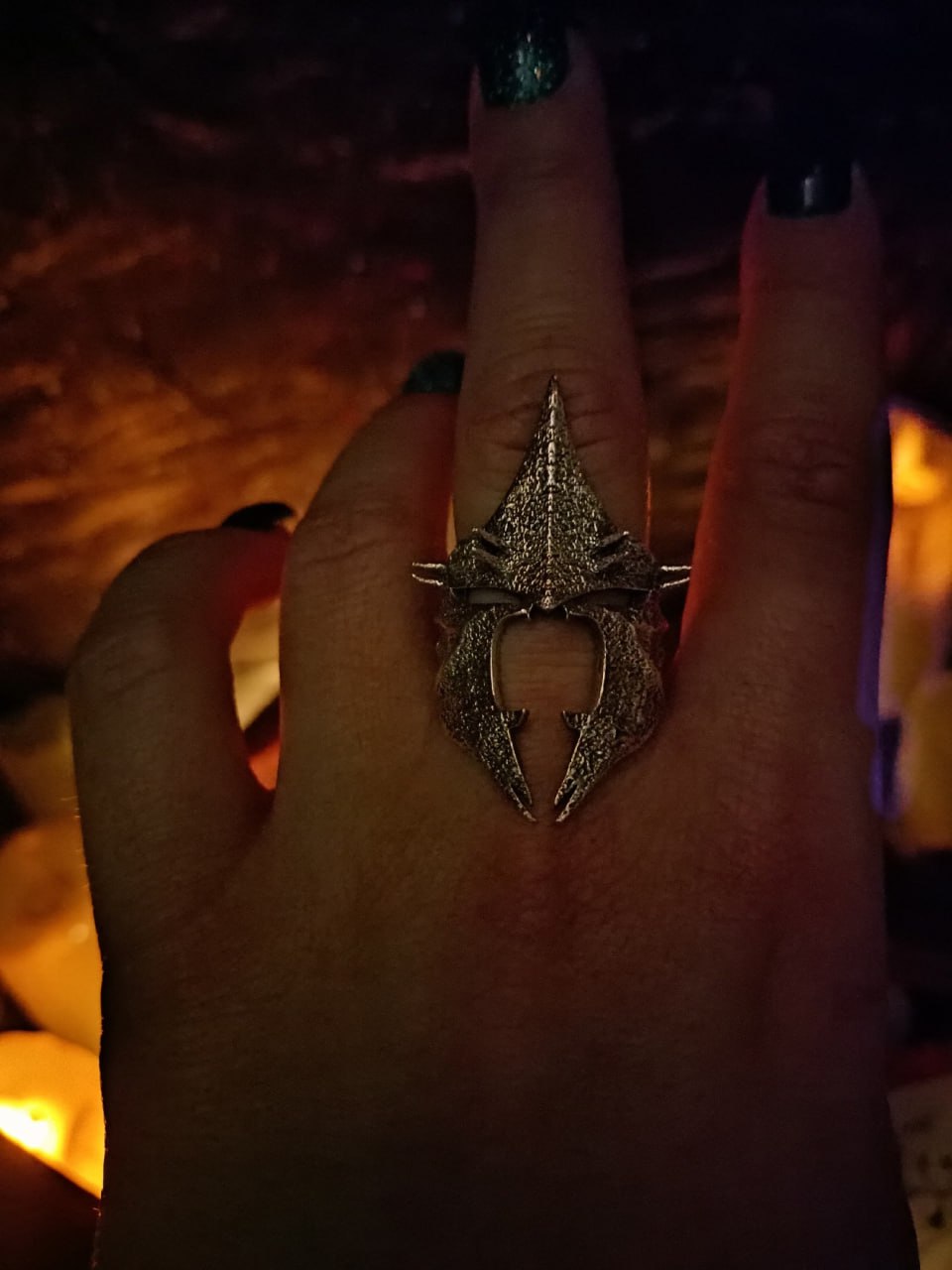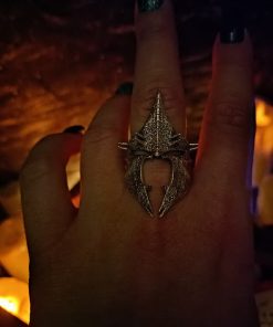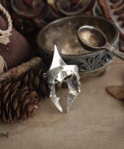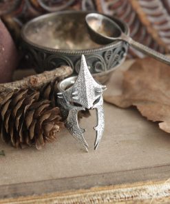 The Dark rider helmet ring comes in your choice of Sterling silver or Bronze. To enhance the intricate details, the ring is finished with a decorative blackening process.