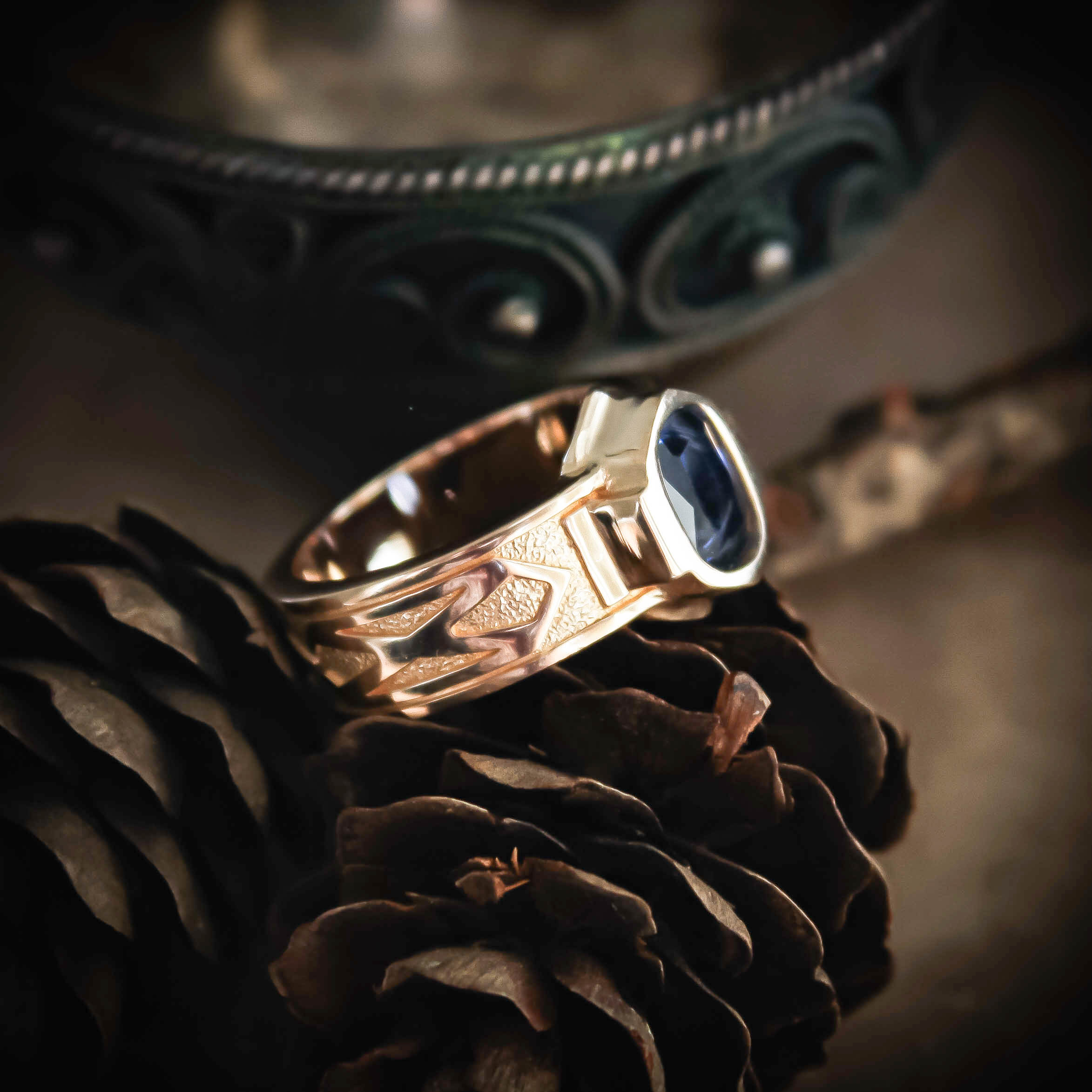 Ring of a Dwarf-lord comes in Sterling silver, bronze or gold plated silver. To enhance the intricate details, the ring is finished with a decorative blackening process.