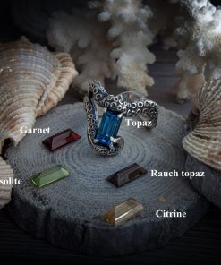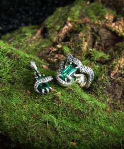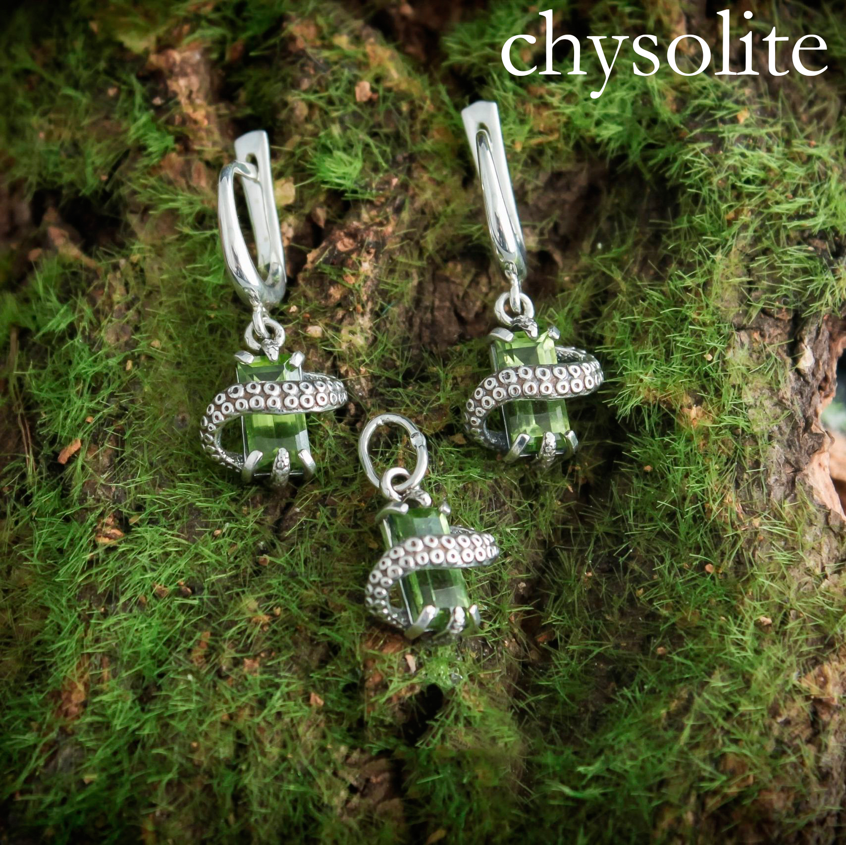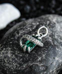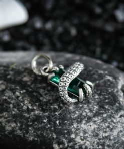 Miniature silver octopus tentacle pendant with a gemstone.