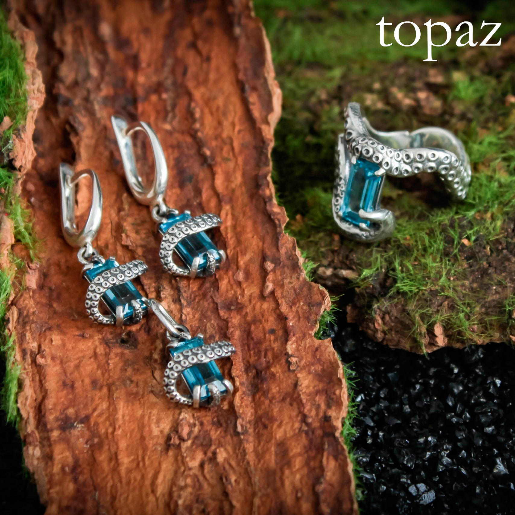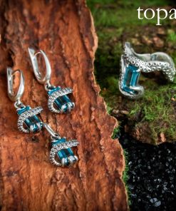The earrings are crafted from sterling silver.