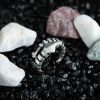 Available with natural gemstone inlays: moonstone, rhodolite garnet, blue chalcedony, rose quartz, amethyst, black onyx, or malachite. Also available in a version without a gemstone.