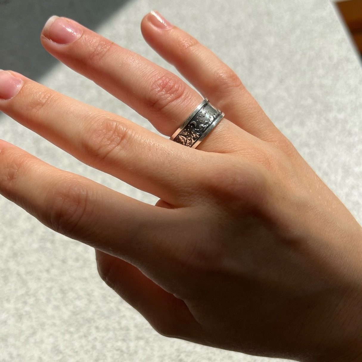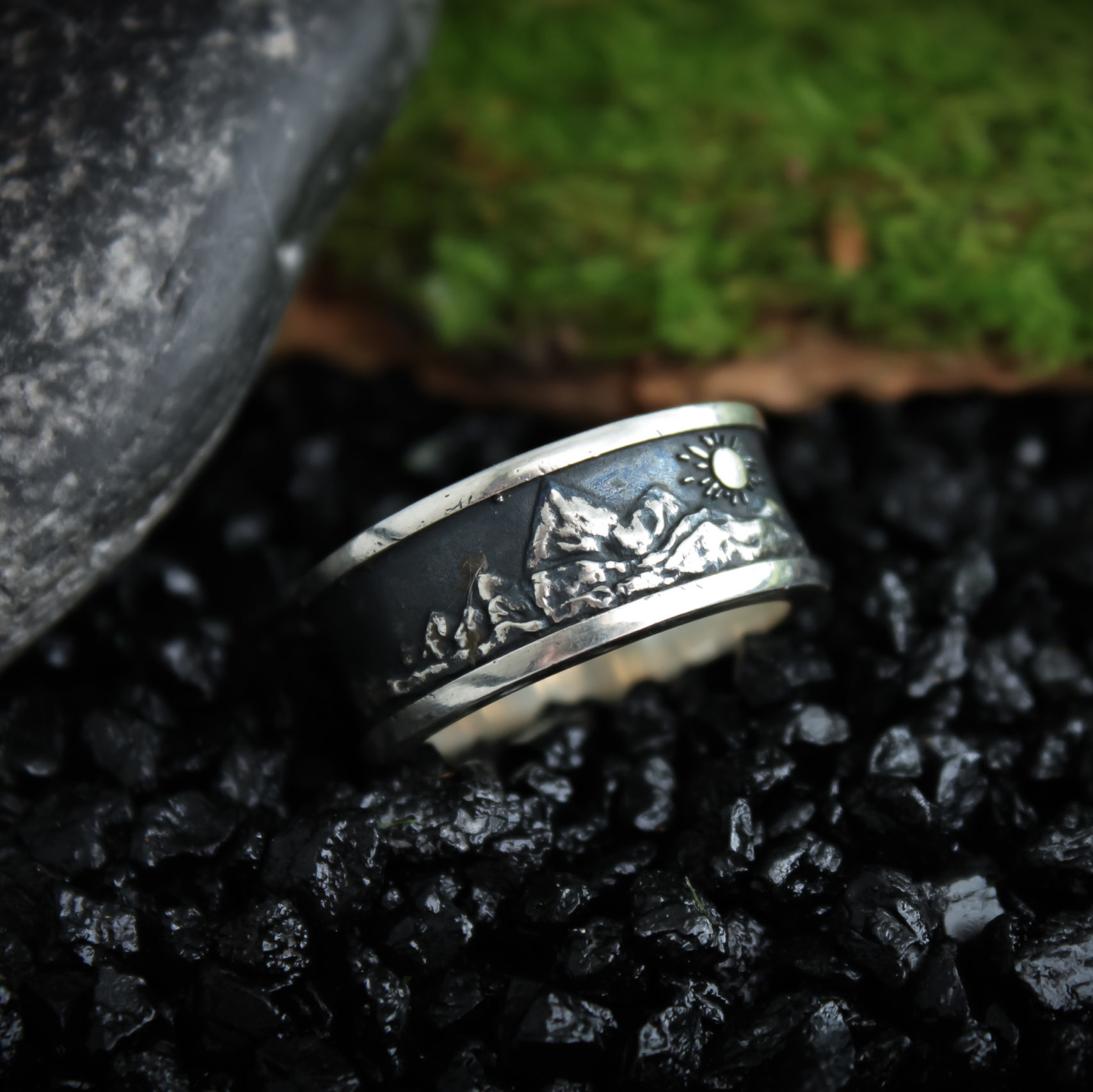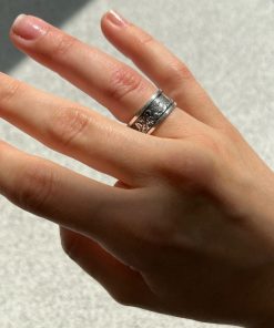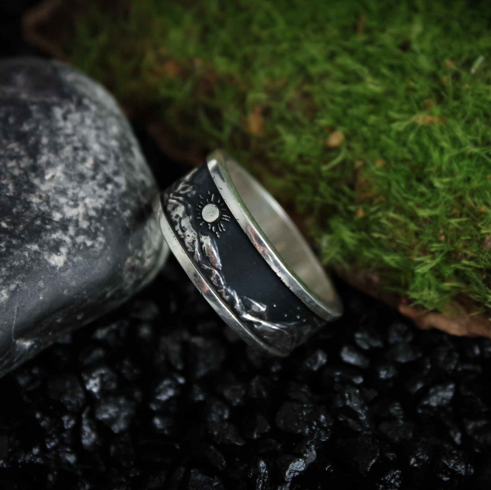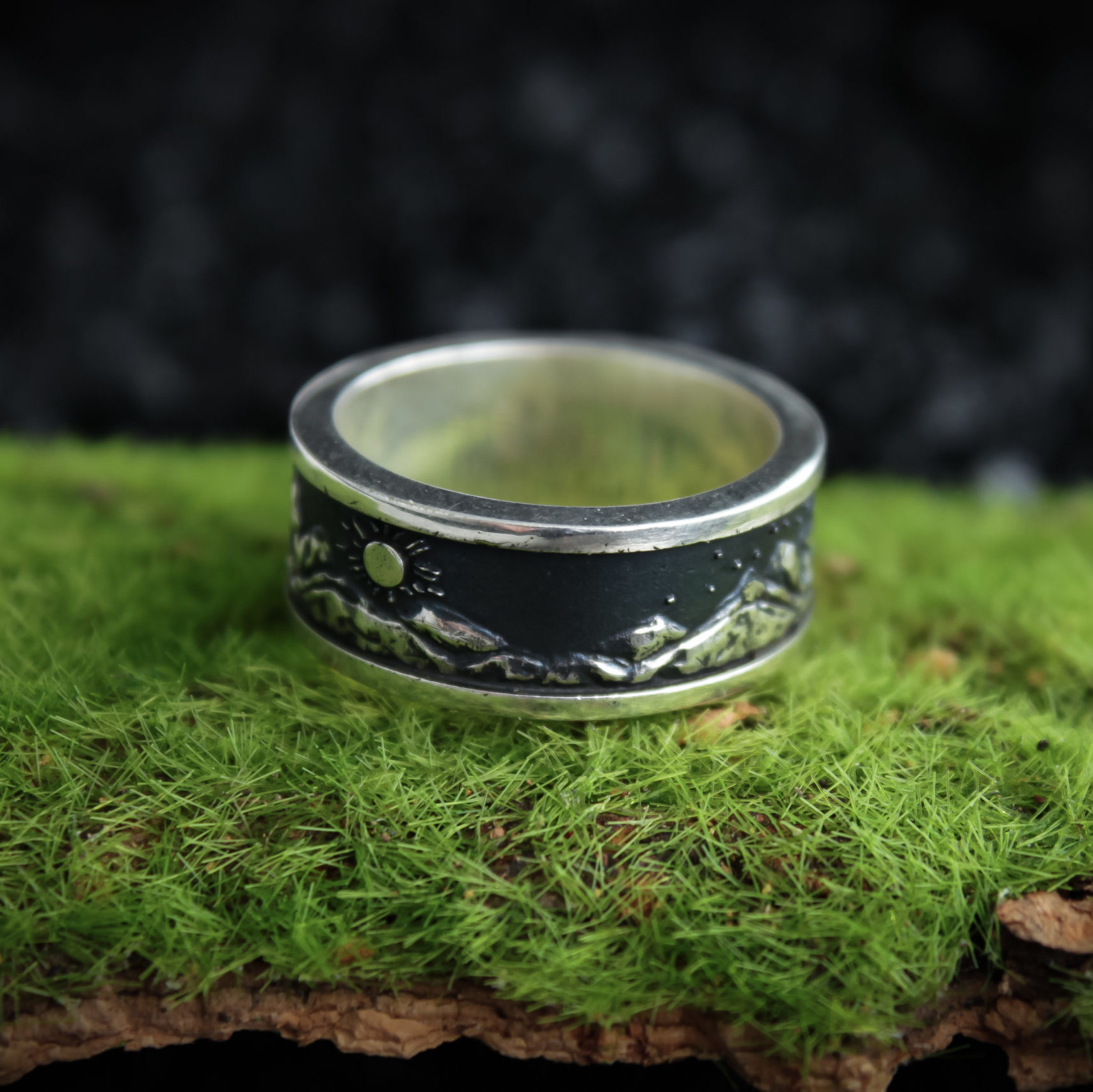 Made of Sterling silver. Finished with decorative blackening to highlight the texture.