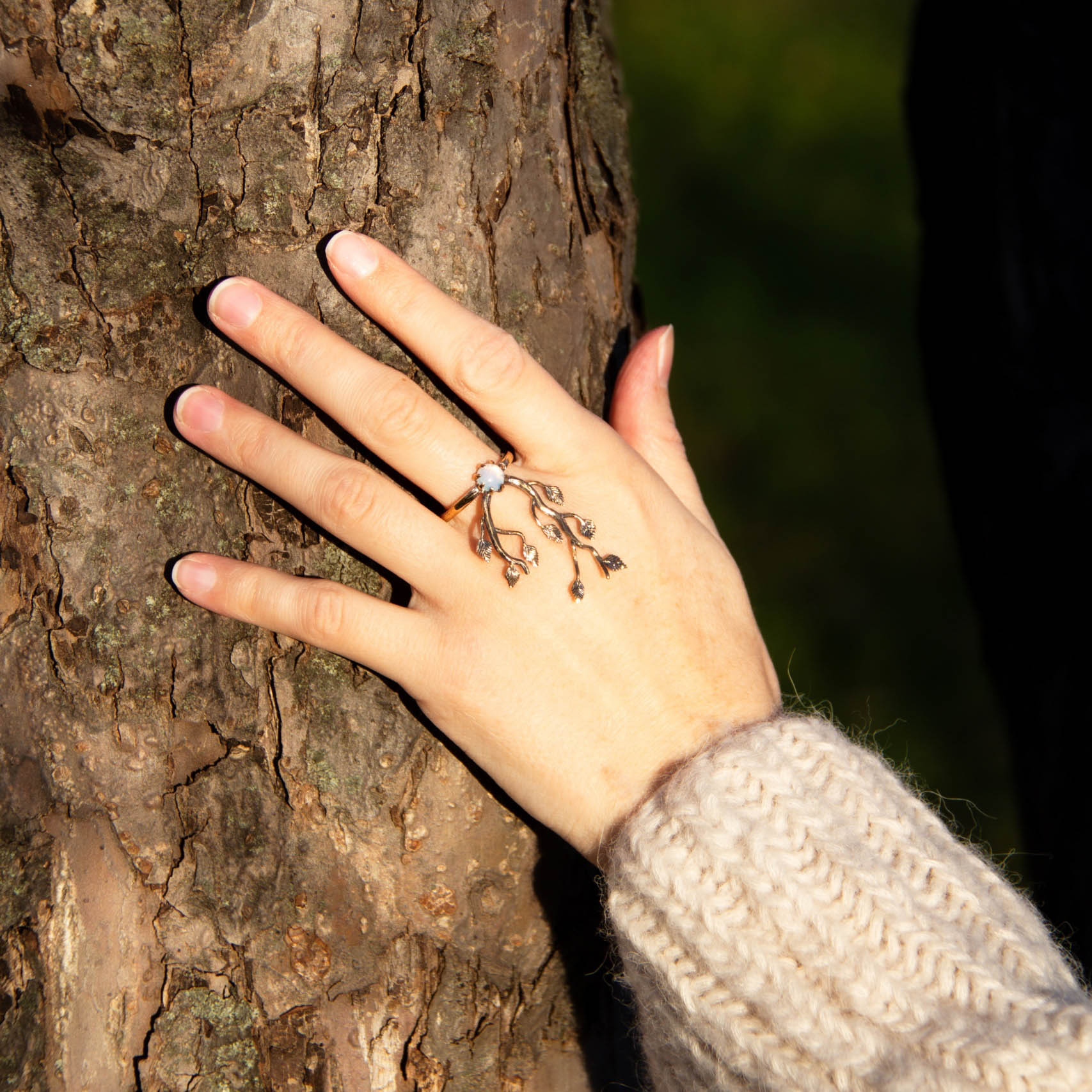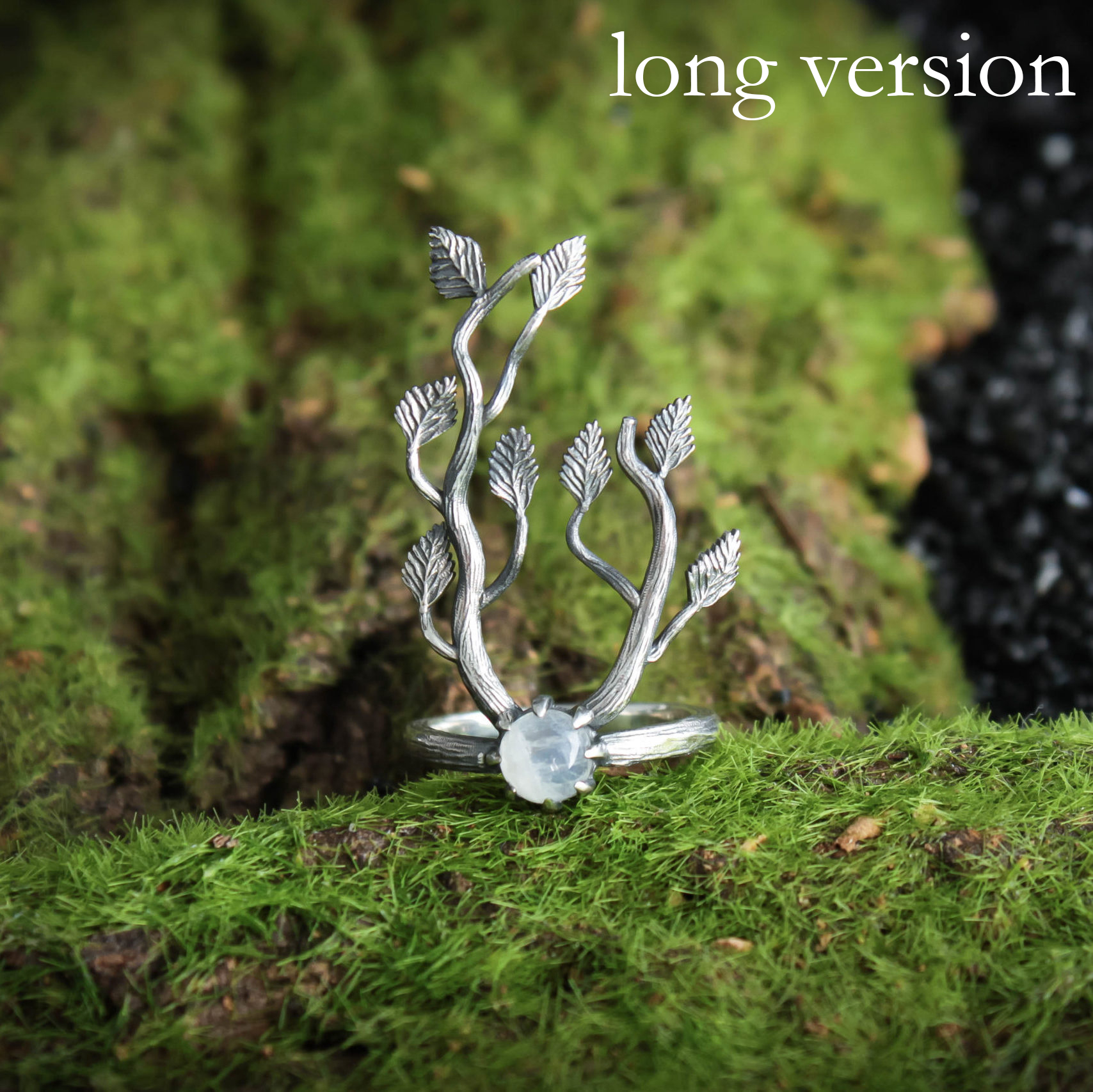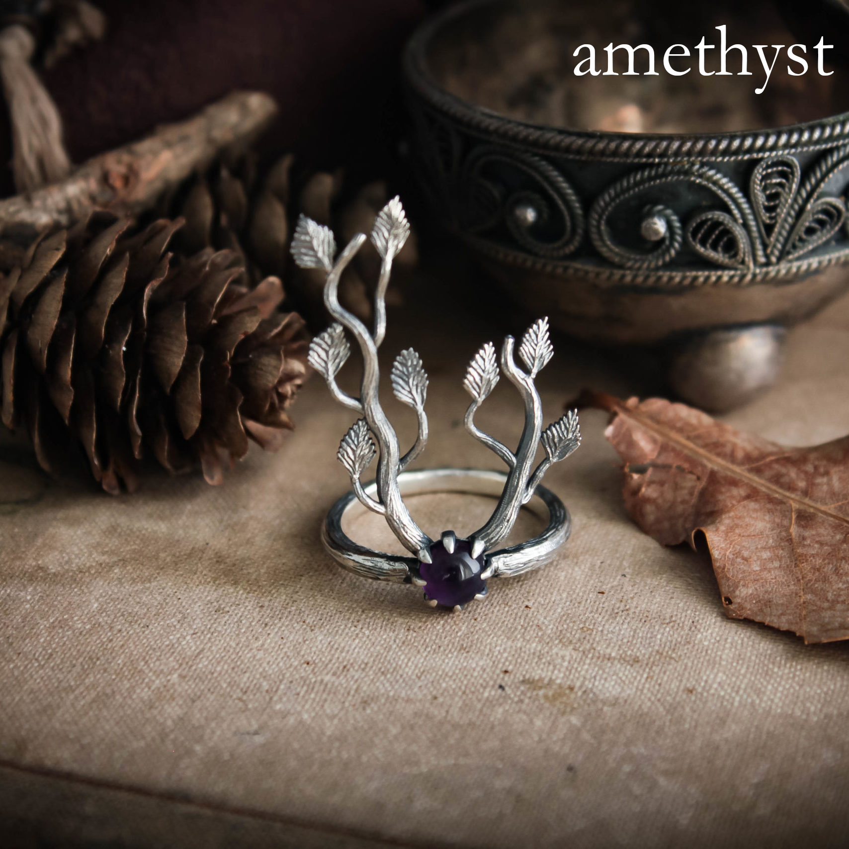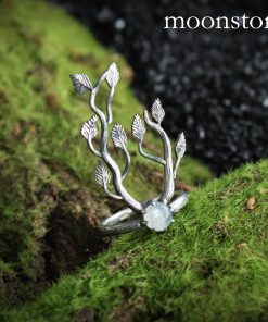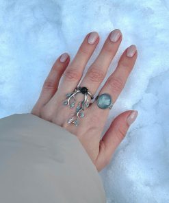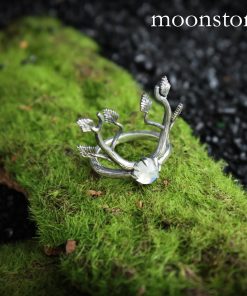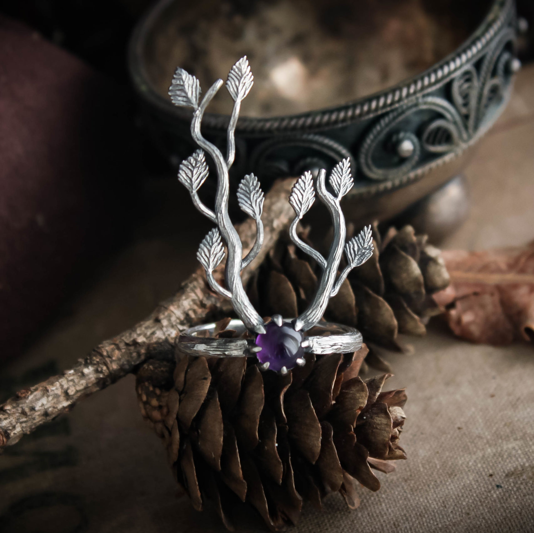 The ring is made of sterling silver with a natural gemstone, features decorative blackening to highlight its textures.