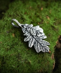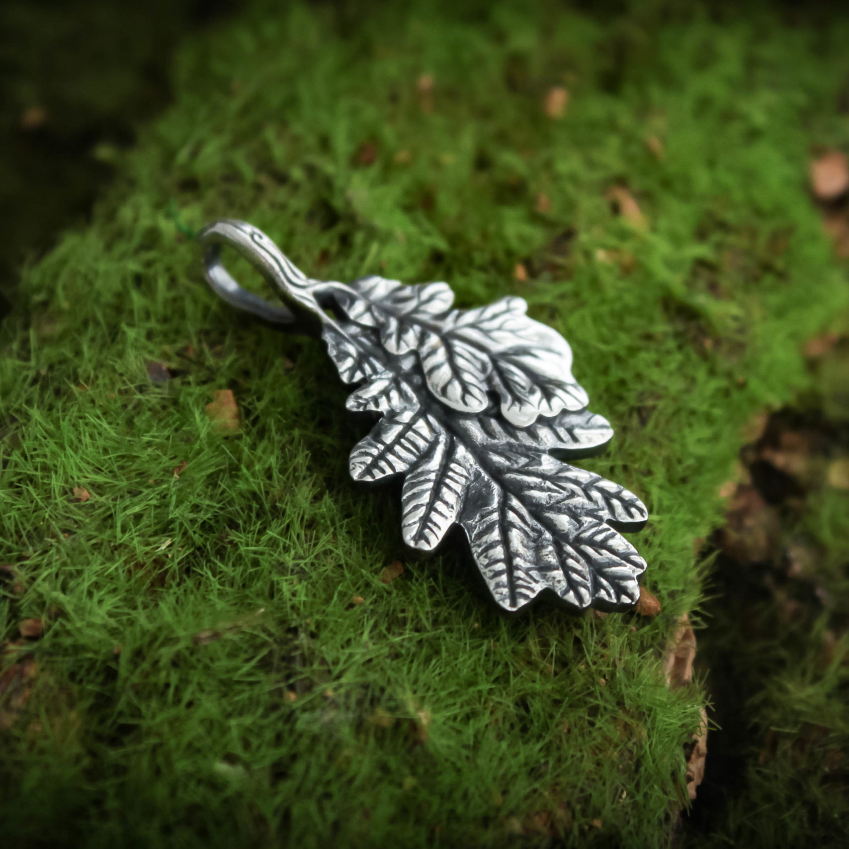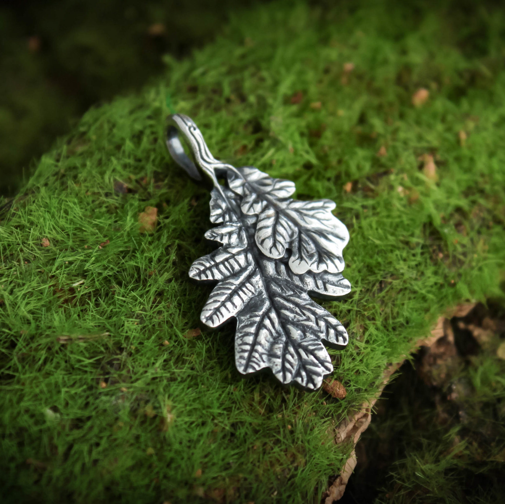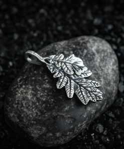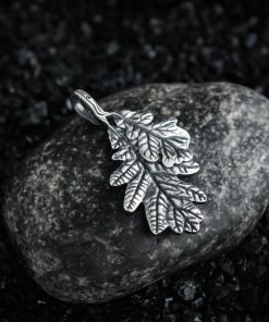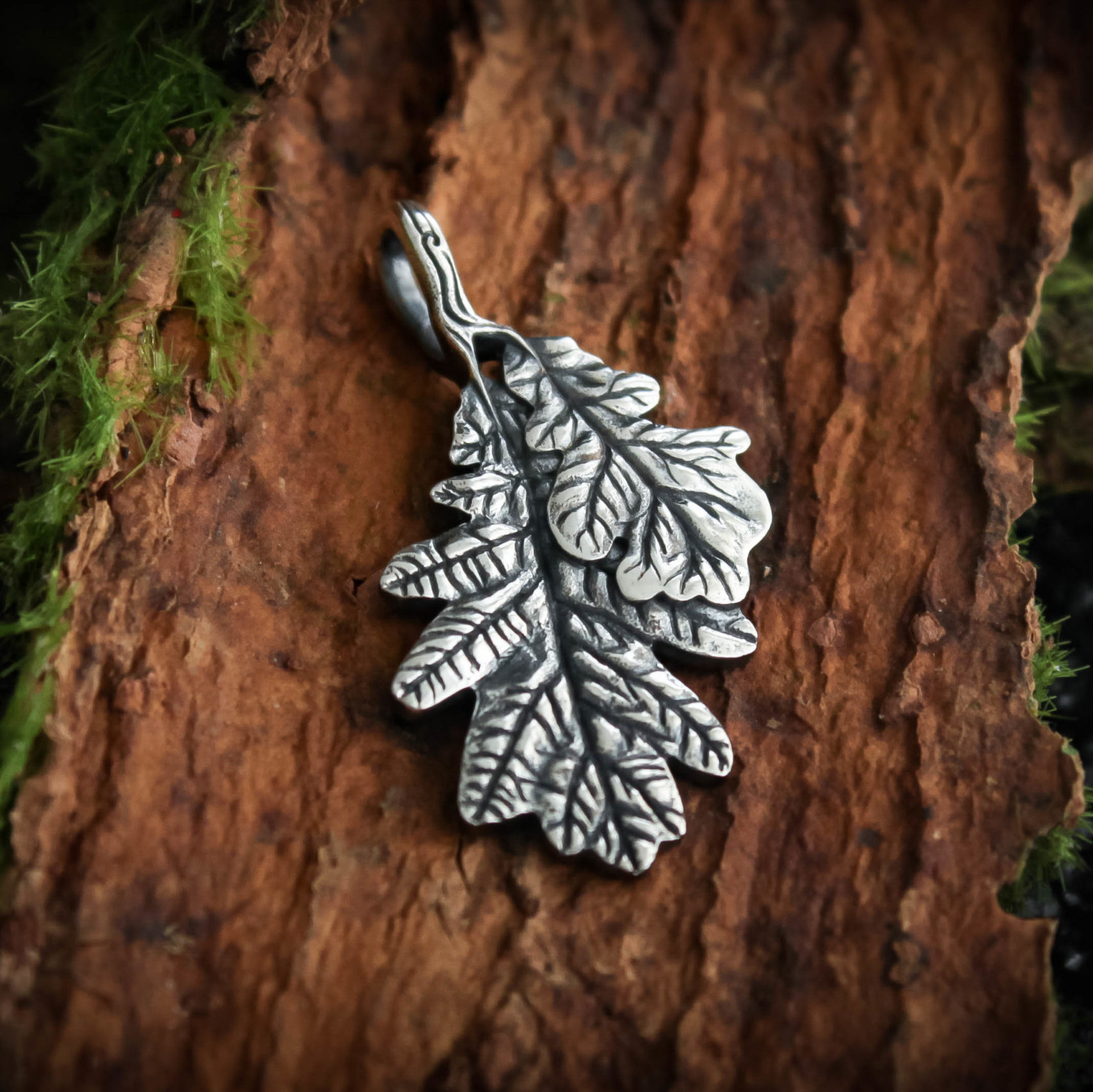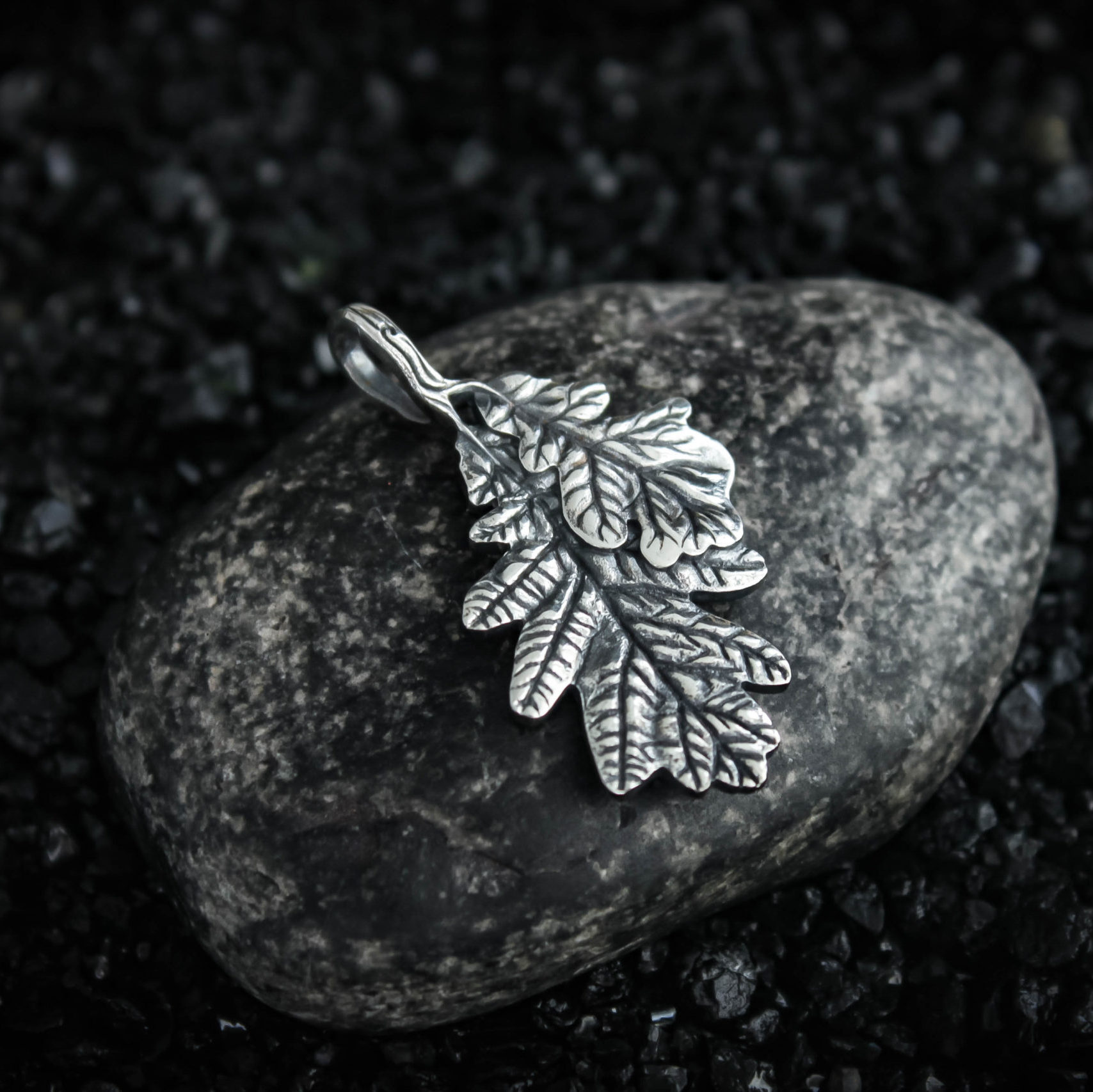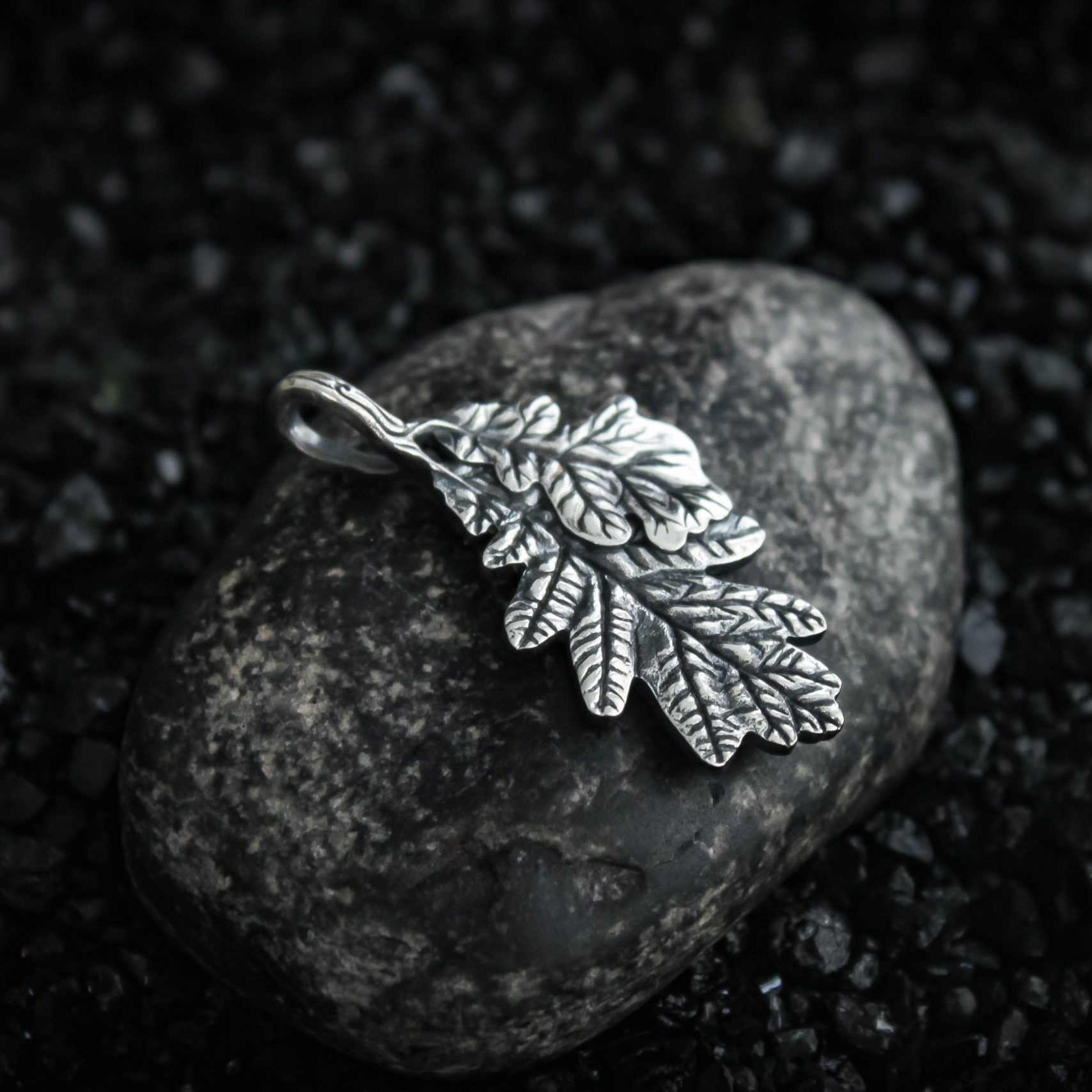 The pendant is crafted from sterling silver, features decorative blackening to highlight its textures.