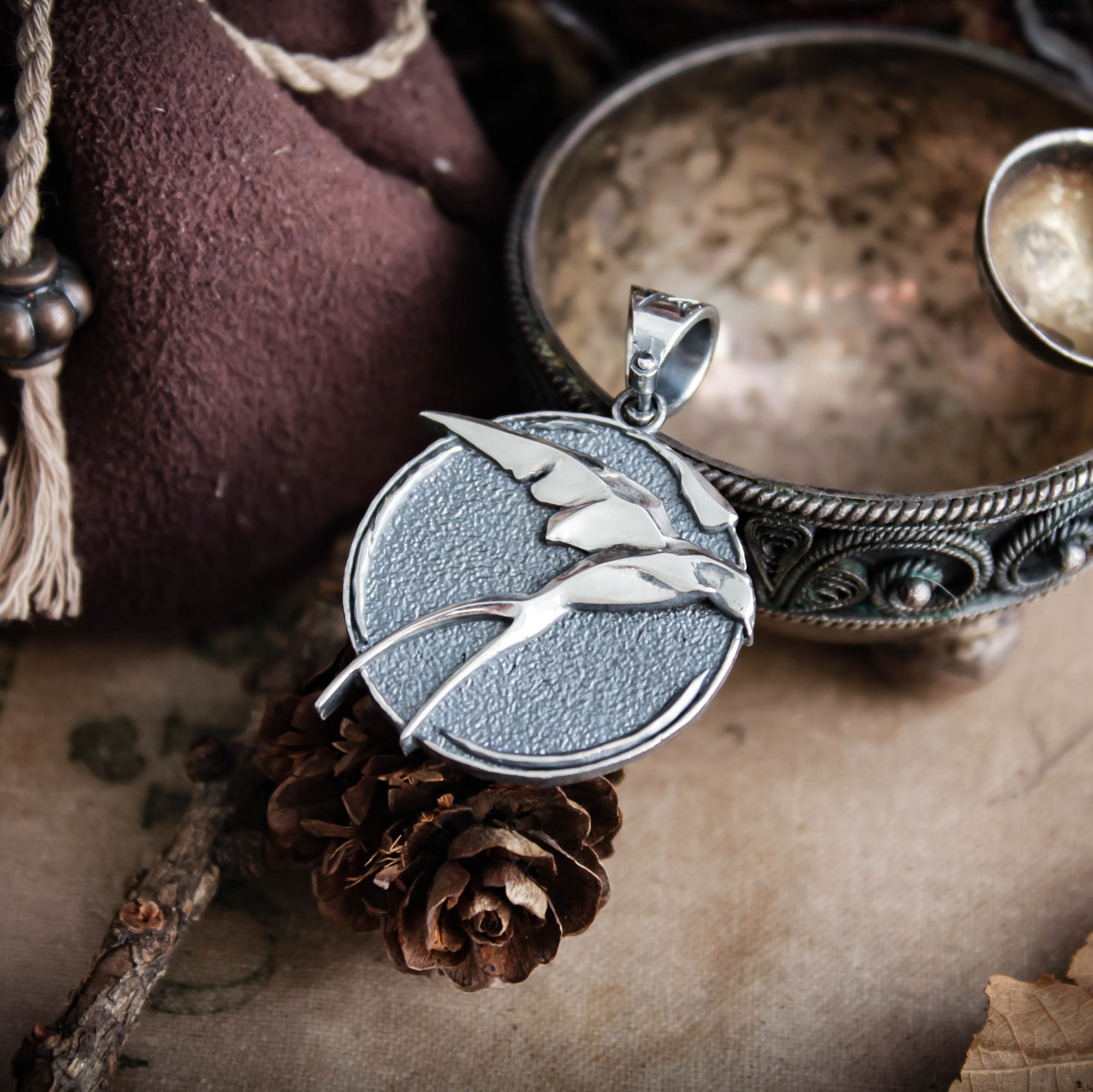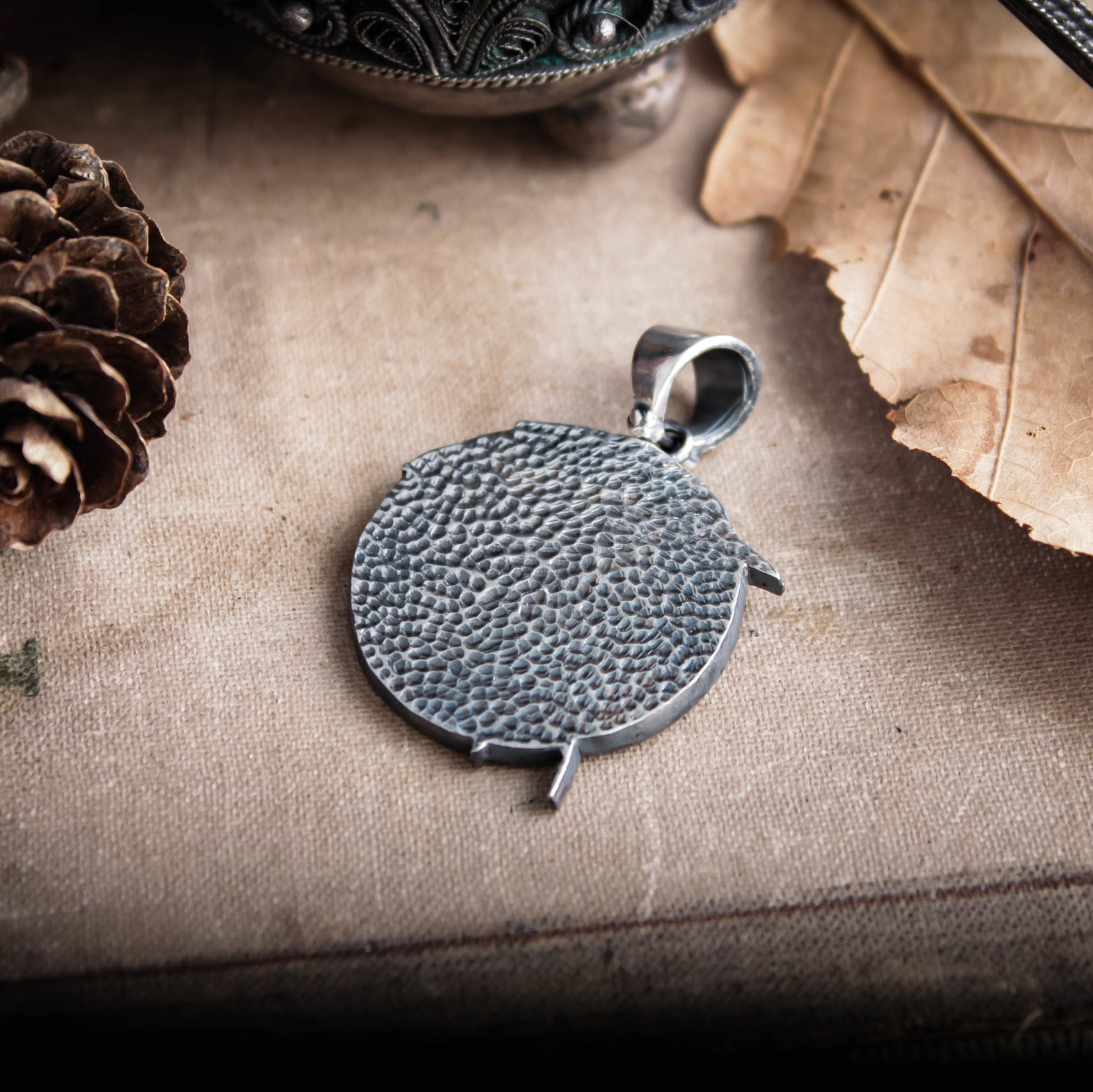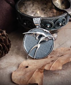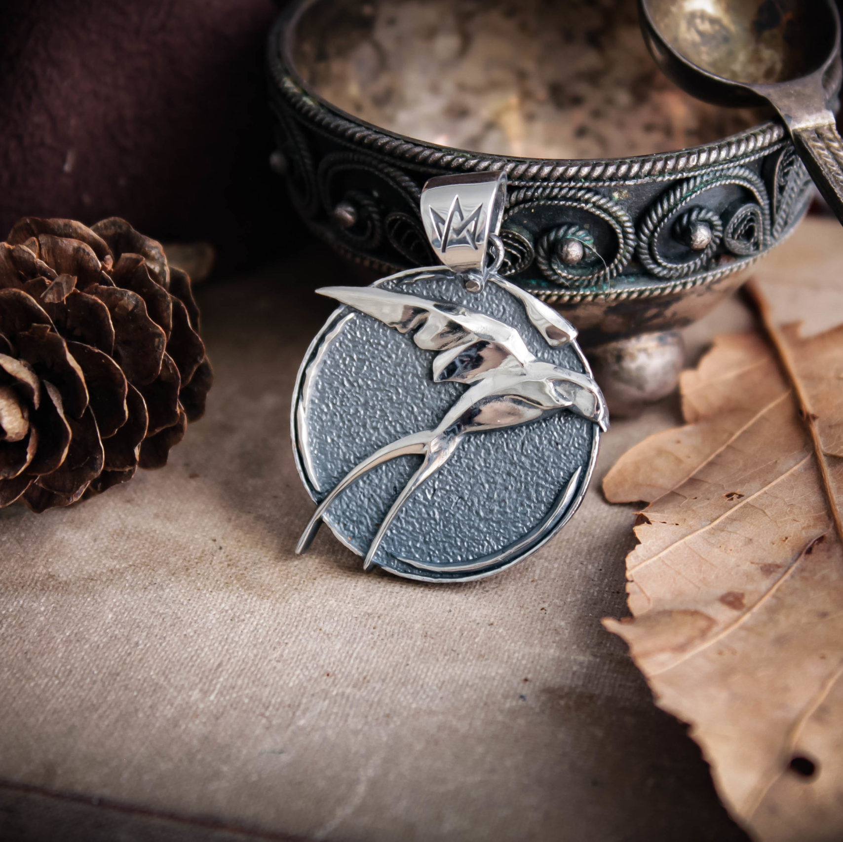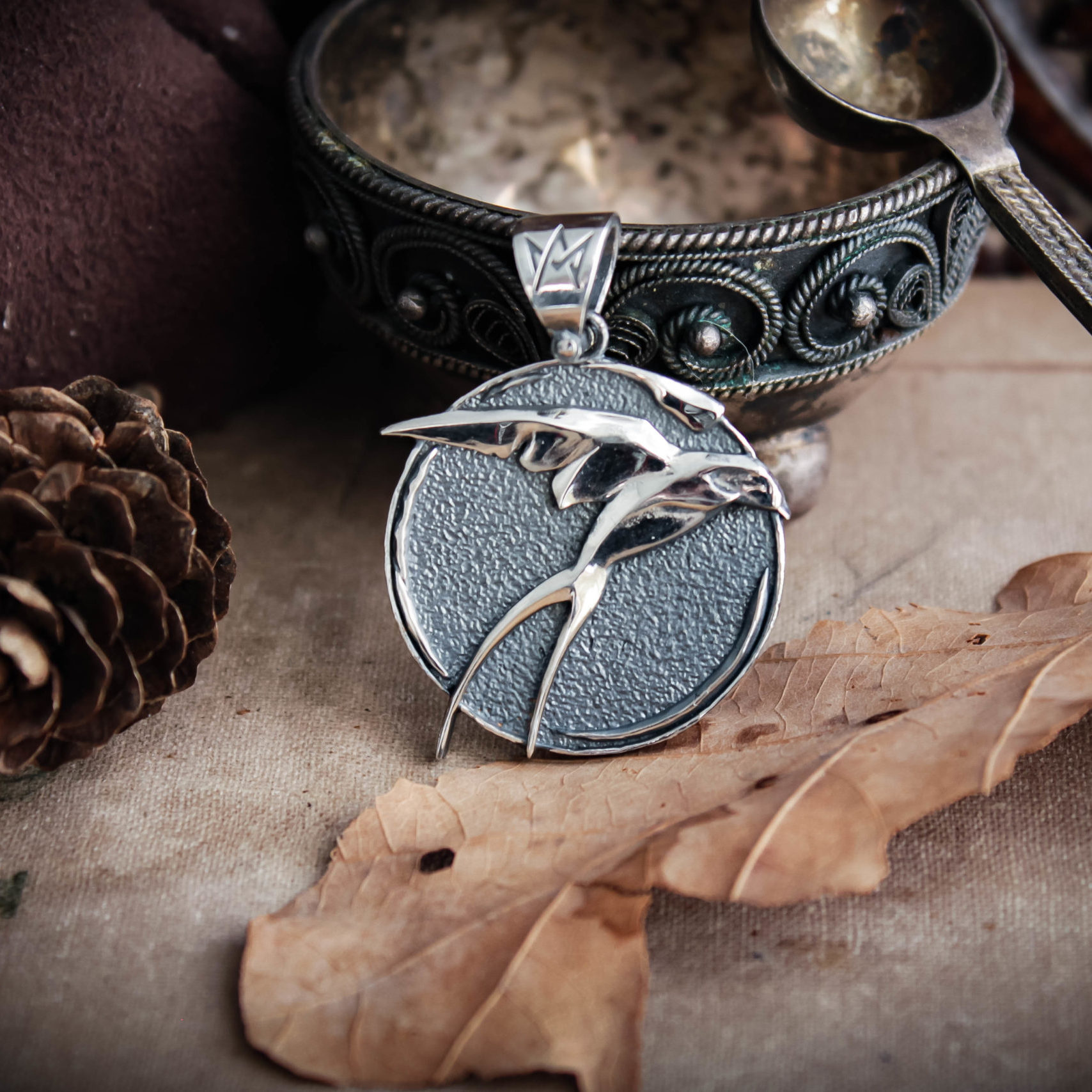 The round swallow medallion comes in your choice of Nickel silver or Sterling silver. Finished with decorative blackening to enhance the texture.