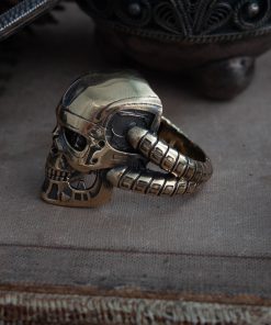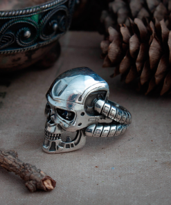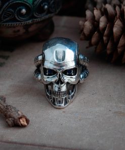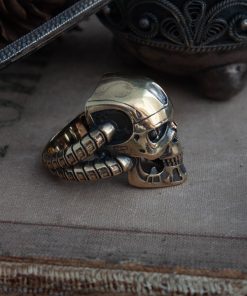 Terminator ring comes in your choice of Sterling silver or Bronze. To enhance the intricate details, the ring is finished with a decorative blackening process.