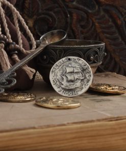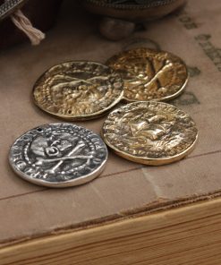 The Uncharted Pirate Sigil comes in your choice of Brass, Sterling silver, or Gold-plated sterling silver. To enhance the intricate details, the coin is finished with a decorative blackening process.